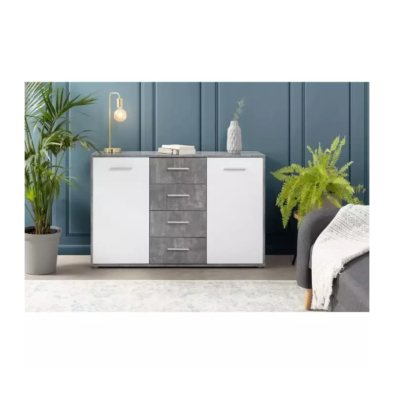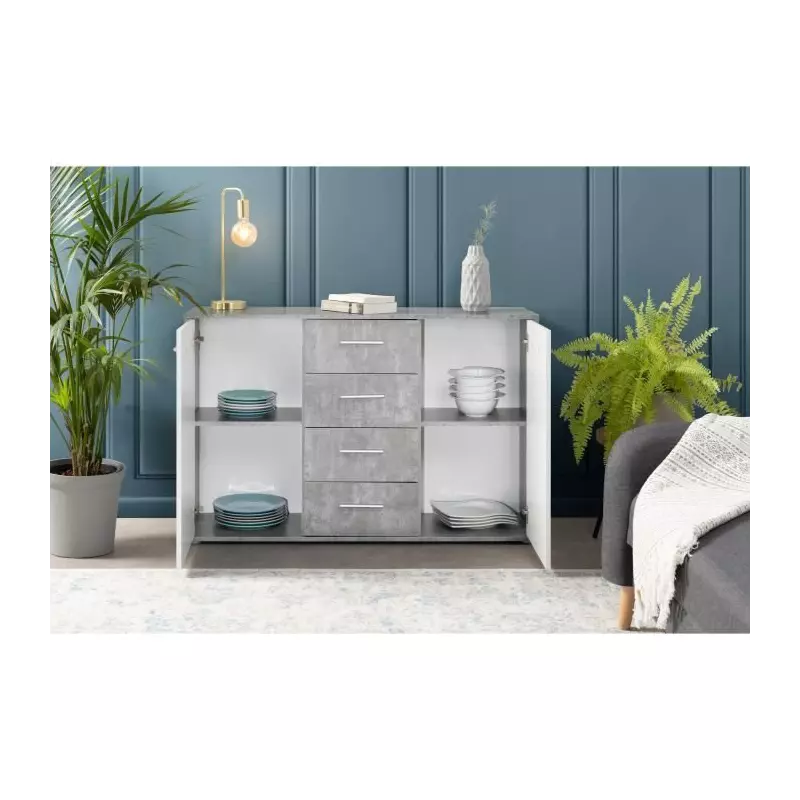 Le Buffet bas PILVI est un meuble à la fois élégant et fonctionnel qui apportera une touche moderne à votre intérieur. Avec ses 2 portes et 4 tiroirs, vous bénéficierez d'un espace de rangement optimal pour organiser votre vaisselle, vos ustensiles de cuisine ou tout autre objet du quotidien.