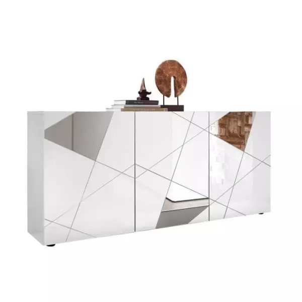 Ajoutez une touche d'élégance à votre intérieur avec le Buffet VICTORY 3 Portes Blanc Laqué brillant avec sérigraphie miroir L181 cm. Ce meuble polyvalent saura répondre à vos besoins de rangement tout en rehaussant le style de votre décor.