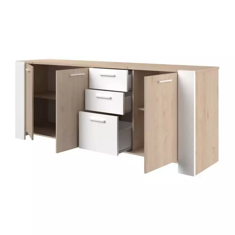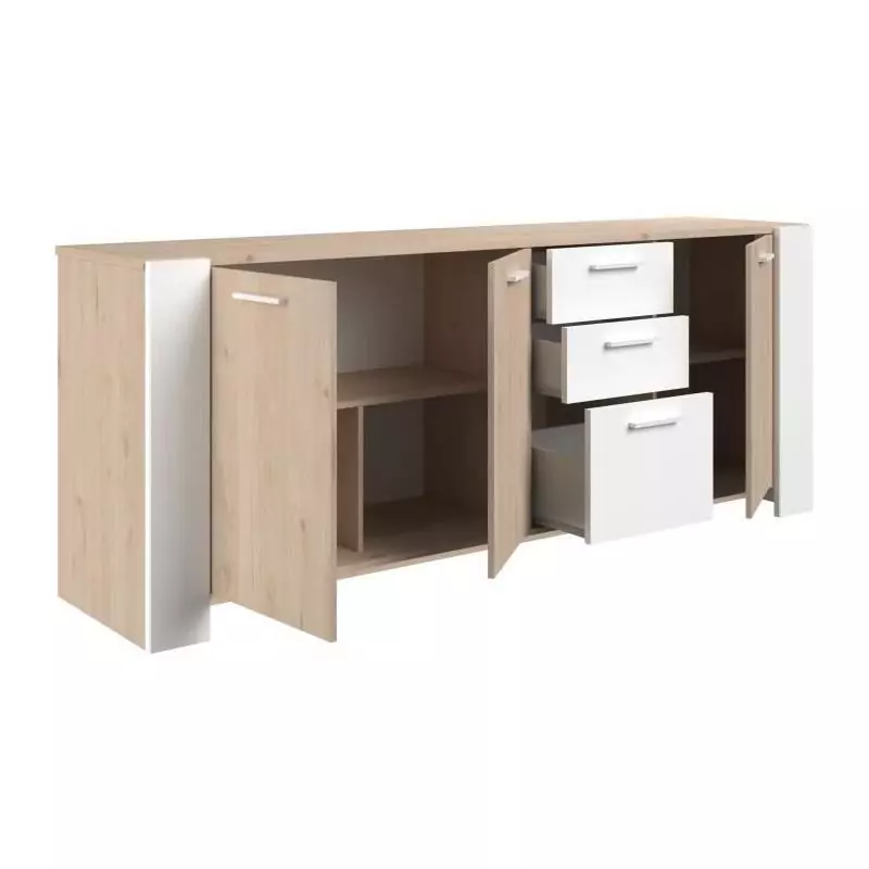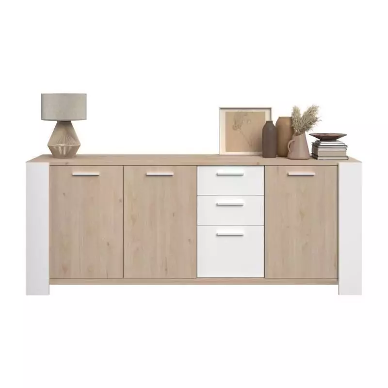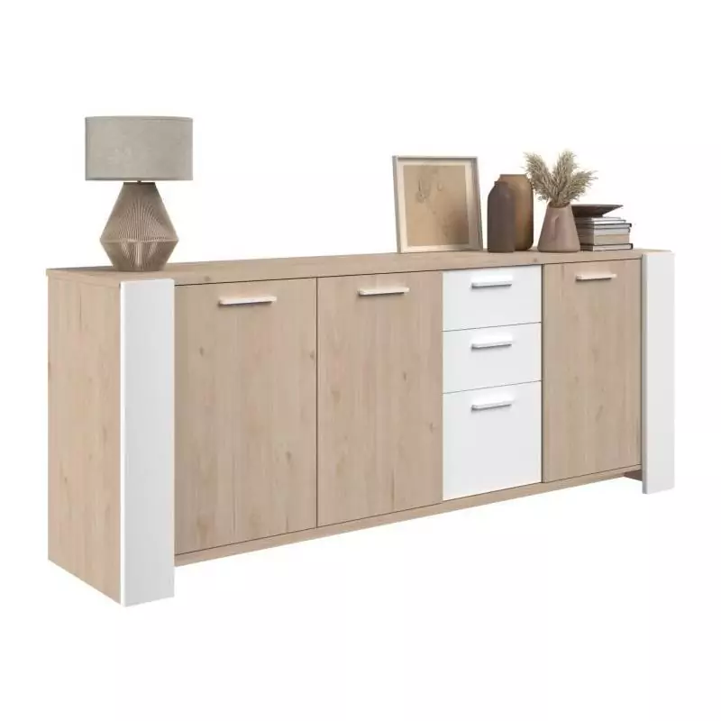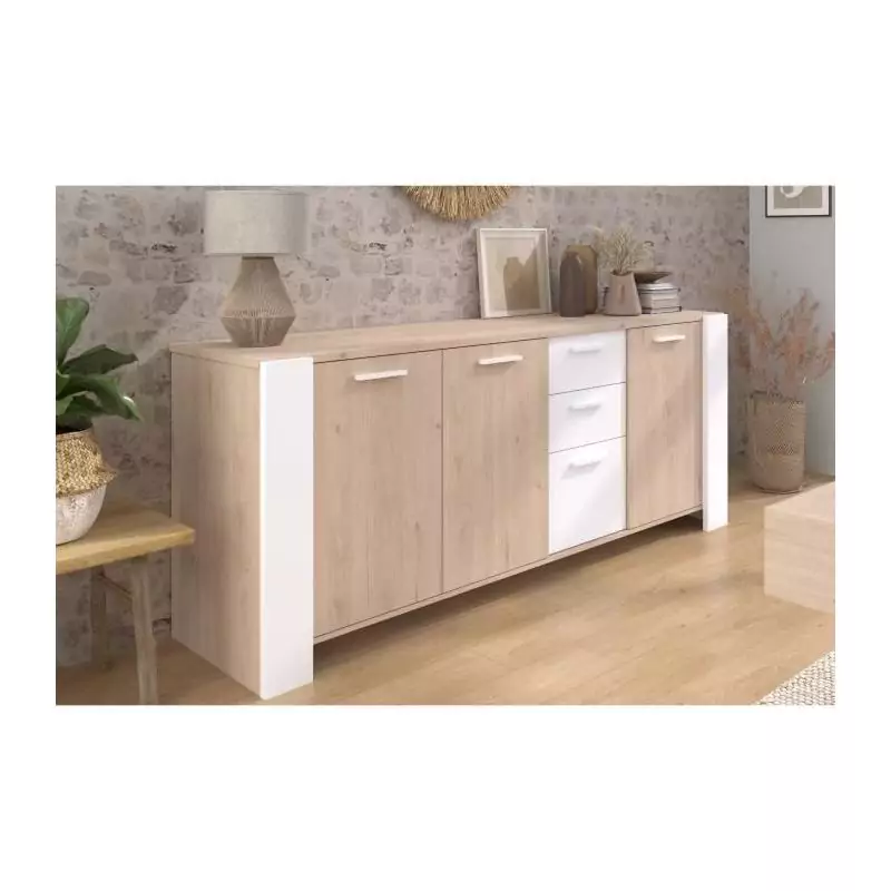 Buffet bas - LOFT - Chene / Blanc - 3 portes - 3 tiroirs - PARISOT