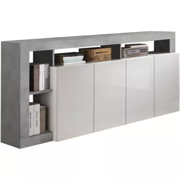 Le Buffet MAESTRO est un meuble élégant et moderne qui apportera une touche de sophistication à votre espace de vie. Avec son design contemporain en décor béton et blanc laqué brillant, ce buffet se distingue par son esthétique raffinée et intemporelle.