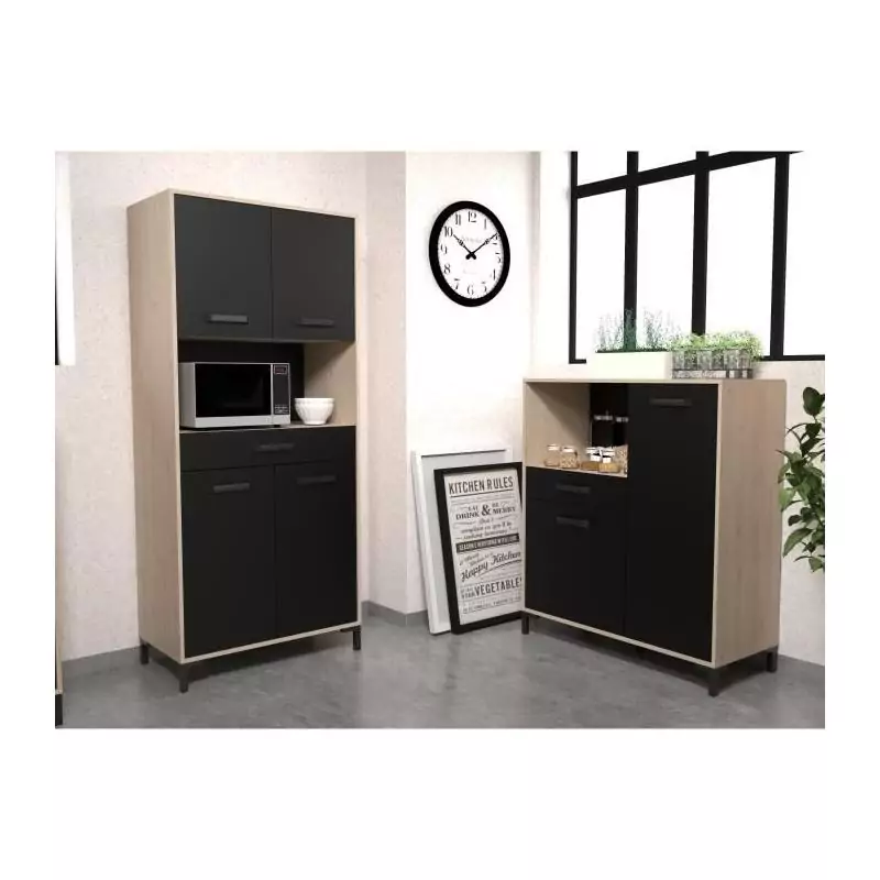 Le Buffet de cuisine FACTORY est un meuble au design moderne et élégant qui apportera une touche de sophistication à votre cuisine. Avec son décor chêne et noir, il s'intègre parfaitement dans tout type de décoration intérieure.