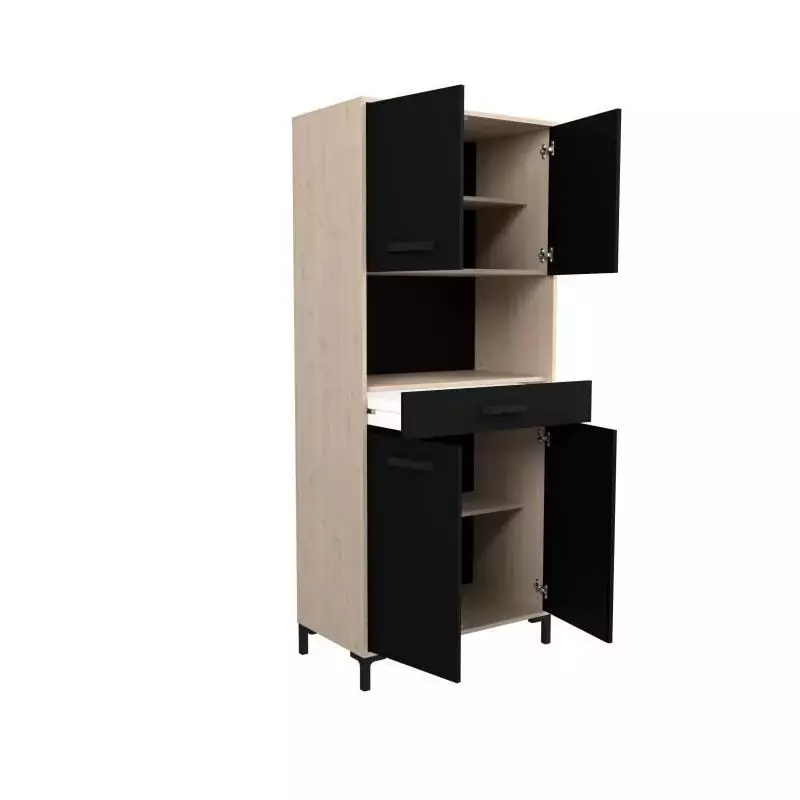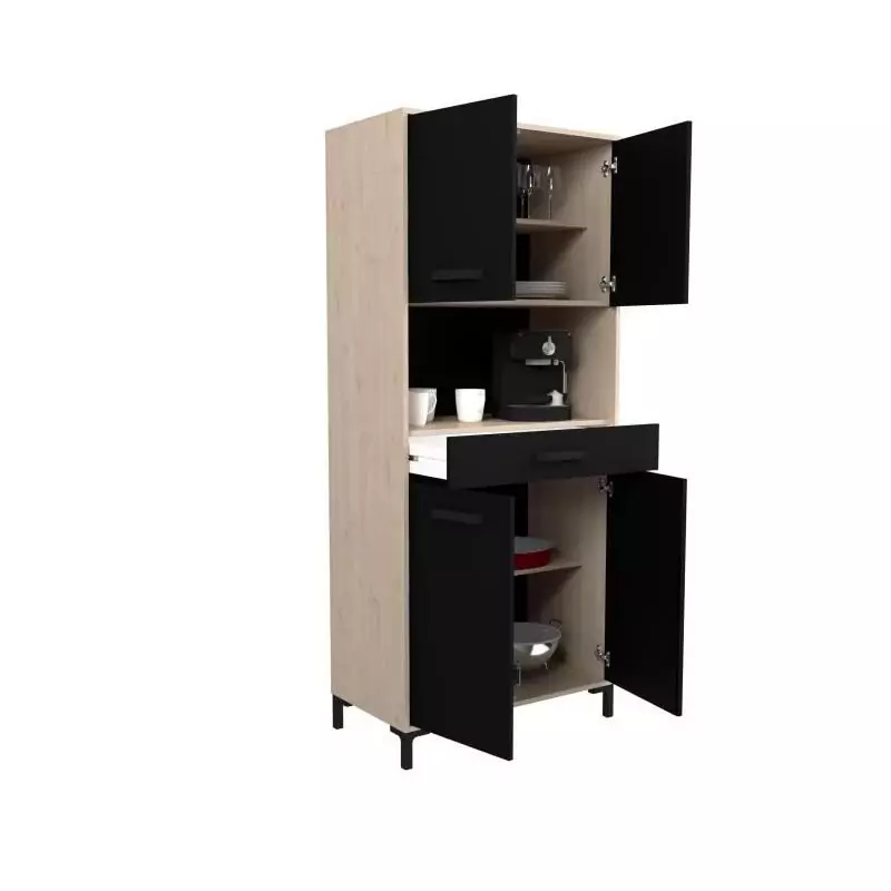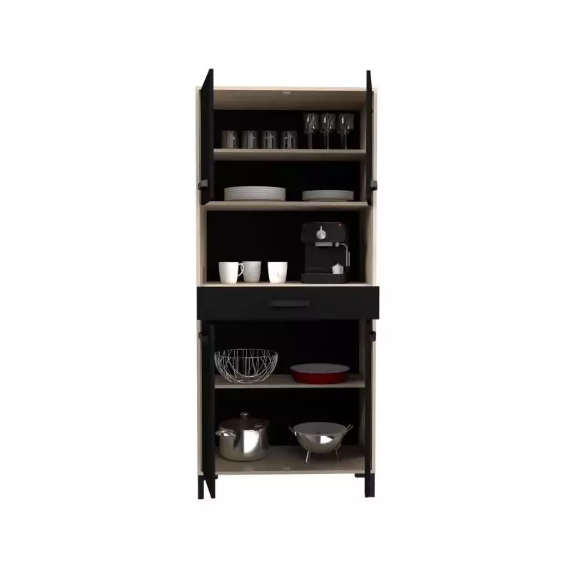 Ce buffet est équipé de 2 portes + 1 tiroir, offrant ainsi un espace de rangement optimal pour vos ustensiles de cuisine, vaisselle, et autres accessoires. Grâce à sa conception modulable, vous pouvez organiser l'intérieur selon vos besoins et préférences, pour une organisation sur mesure.