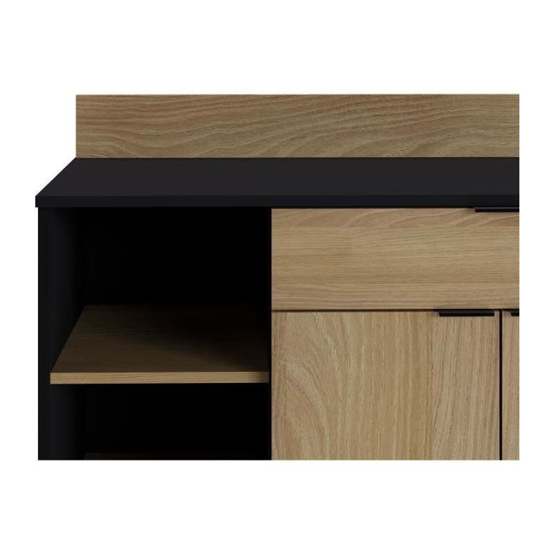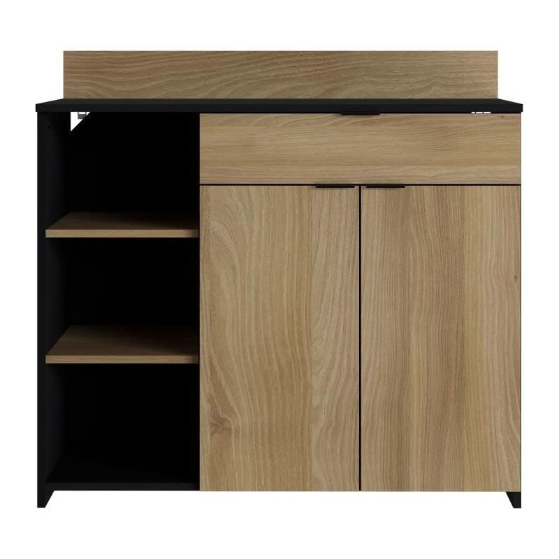 Buffet Cuisine - 2 portes + 1 tiroir - Mélaminé chene et noir - L 100 x P 42 x H 95 cm