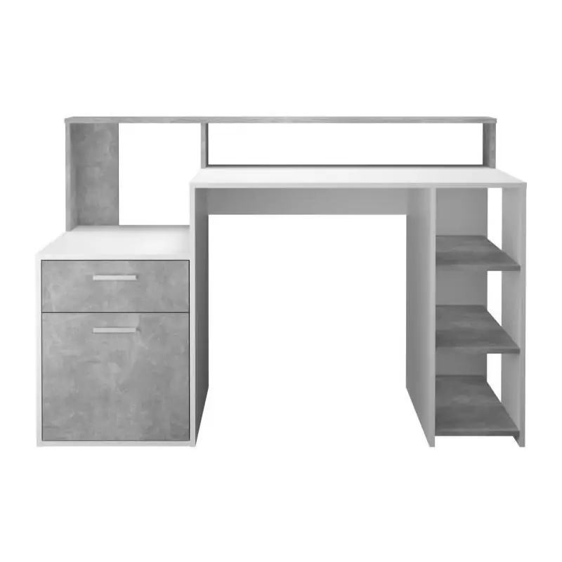 La mélamine blanc/gris béton apporte une touche moderne et épurée à ce bureau, lui permettant de s'adapter à tous les styles de décoration. La finition soignée et la qualité des matériaux garantissent une durabilité et une résistance accrues, pour une utilisation quotidienne sans souci.