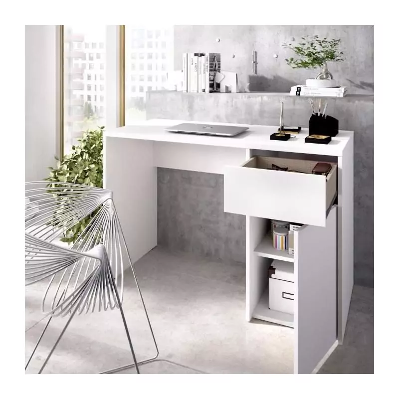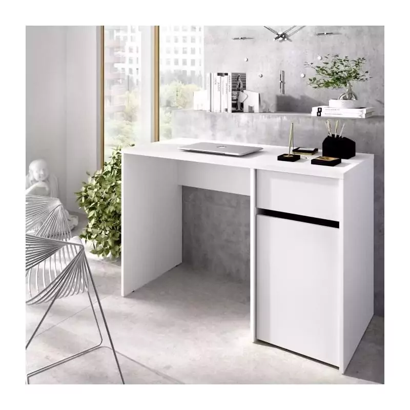 Le Bureau BALI est équipé d'un tiroir et d'une porte, offrant ainsi un espace de rangement pratique pour vos fournitures de bureau, documents et autres objets essentiels. Vous pourrez garder votre espace de travail bien organisé et dégagé, favorisant ainsi une atmosphère propice à la concentration et à la productivité.