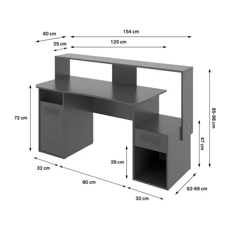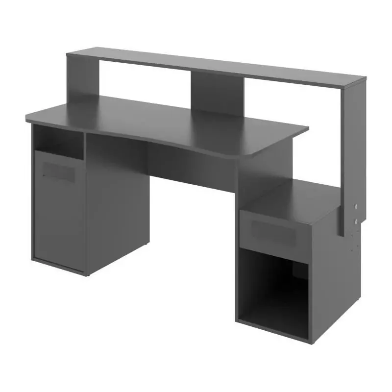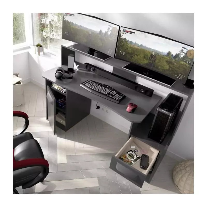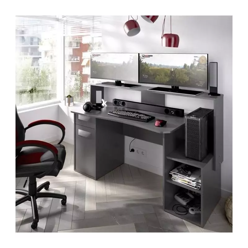 La couleur graphite du bureau ajoute une touche d'élégance à votre espace de jeu, idéale pour créer une atmosphère immersive. Sa structure solide et robuste garantit une stabilité optimale pendant vos sessions de jeu intenses.