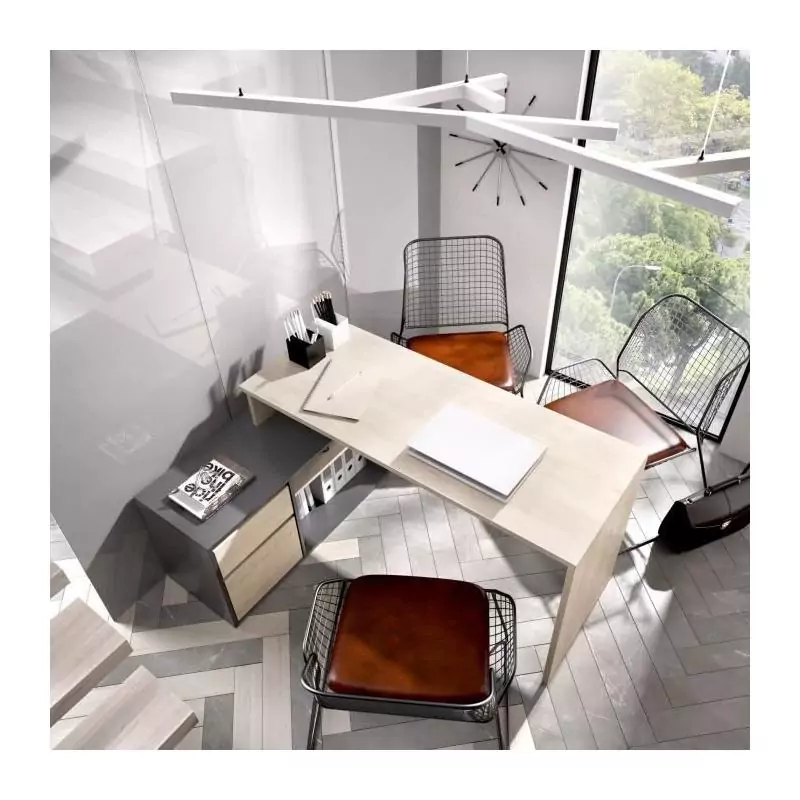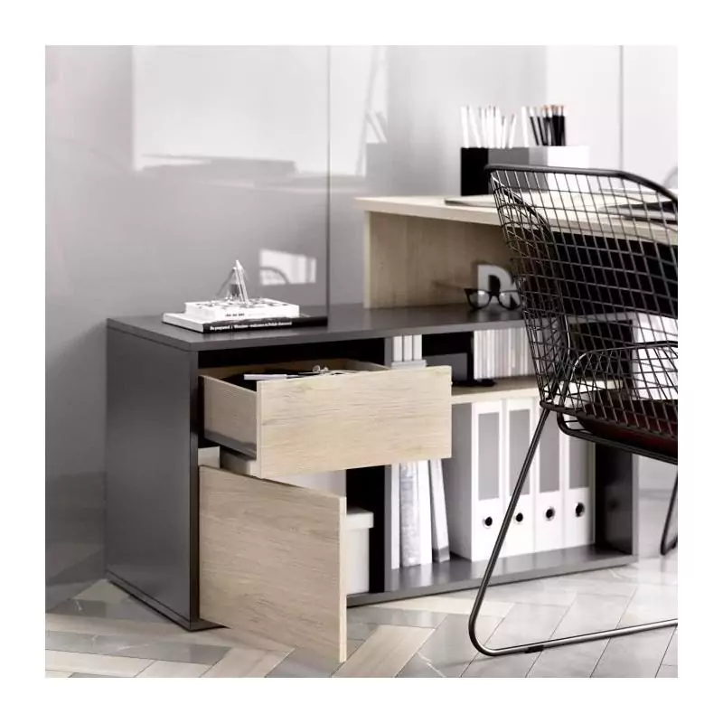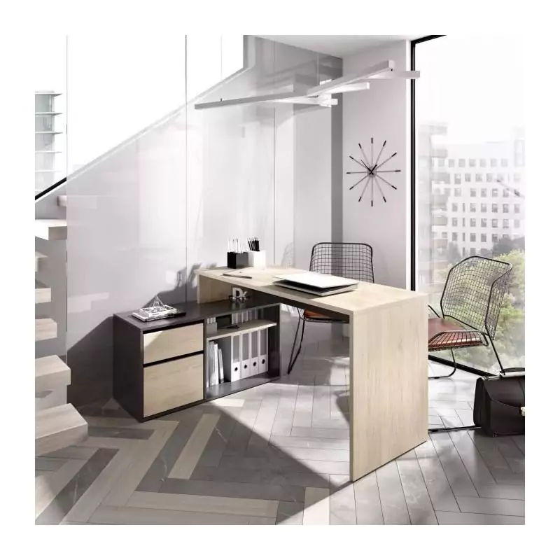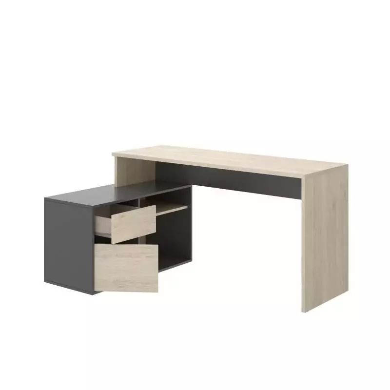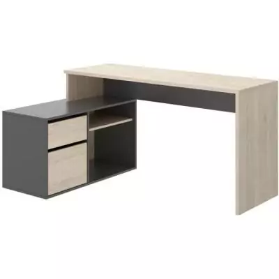 Bureau d'angle reversible 1 tiroir + 1 porte - Décor chene et gris - L 139 x P 92 x H 75 cm - ROX