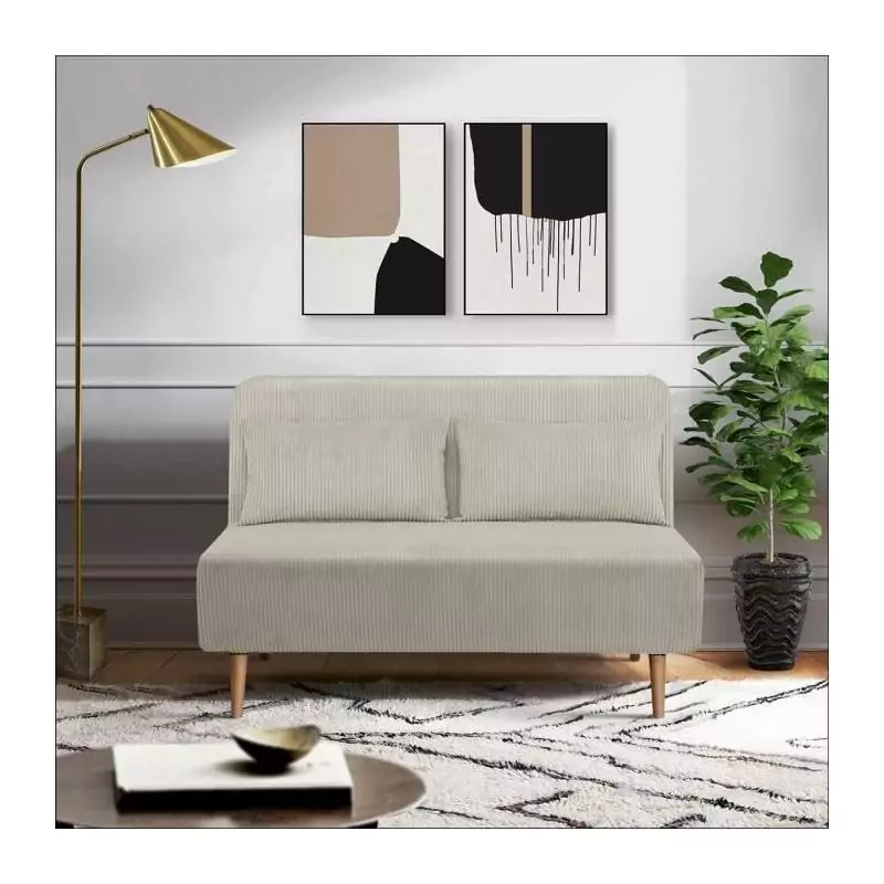Optez pour la banquette BZ - 2 places - Tissu velours côtelé Beige - 130 x 90 x 81 cm - DEPLO pour un meuble polyvalent, confortable et élégant qui deviendra rapidement l'élément central de votre salon ou de votre chambre à coucher.
