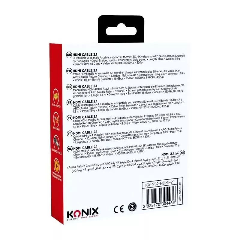 Câble HDMI 2.1 - KONIX - Nintendo Switch 2 - Compatibilité 4K et 8K - Nylon tressé - Longueur 1,8 m - Noir
