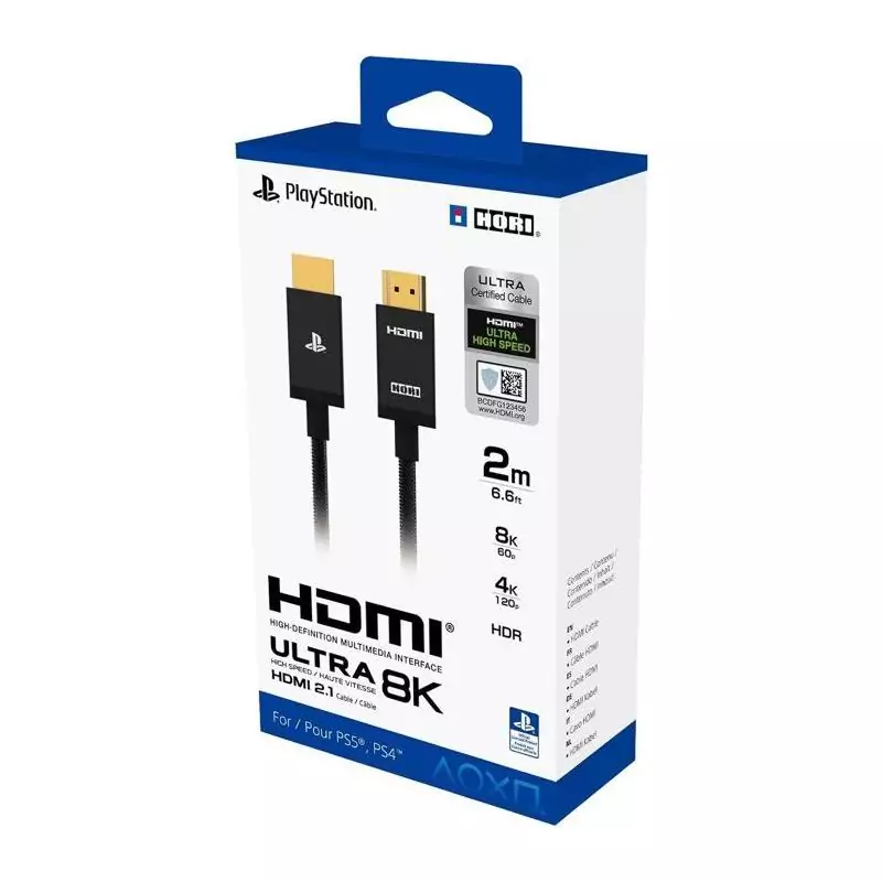 Optimisez votre expérience de jeu avec le câble HDMI 2.1 de Hori pour PlayStation. Ce câble ultra haute vitesse est spécialement conçu pour la PS5, offrant une compatibilité exceptionnelle avec les résolutions 8K, 4K et HDR. Fabriqué en nylon de qualité supérieure, il garantit une transmission optimale des données sur une longueur de 2 mètres. Profitez d'une qualité d'image et de son incomparable pour des parties plus immersives que jamais. Mettez-vous dans l'action avec ce câble HDMI haut de gamme.