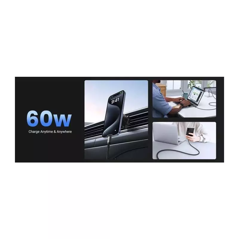 Câble USB-C - UGREEN - Câble data 1 m - 60W - Nylon - PD - Noir