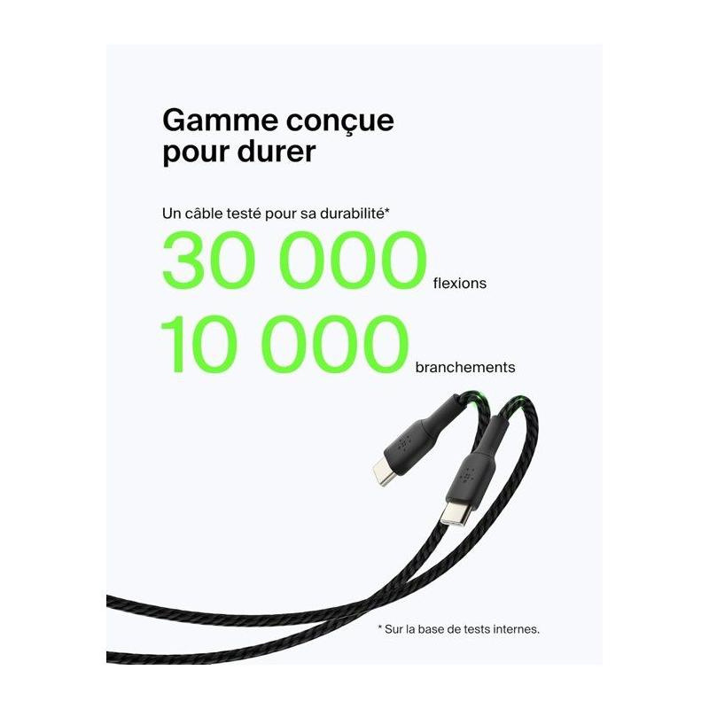 Câble tressé - BELKIN - USB-C vers USB-A - 0,15 m - Noir
