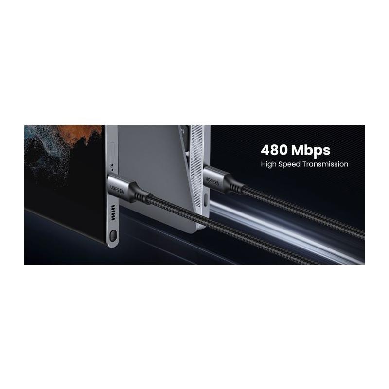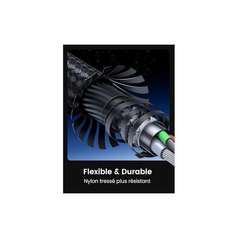 Câble USB-C - UGREEN - Câble data 1 m - 60W - Nylon - PD - Noir
