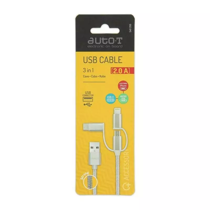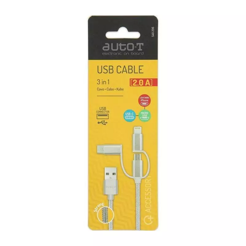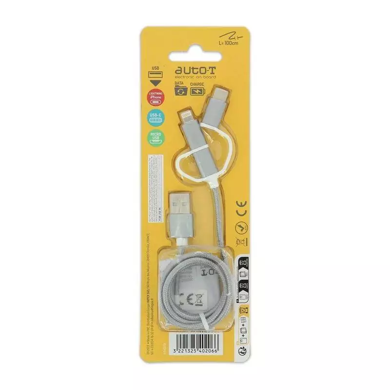 Câble 3 en 1 - AUTO T - 540206 - Micro-USB - Apple - USB-C