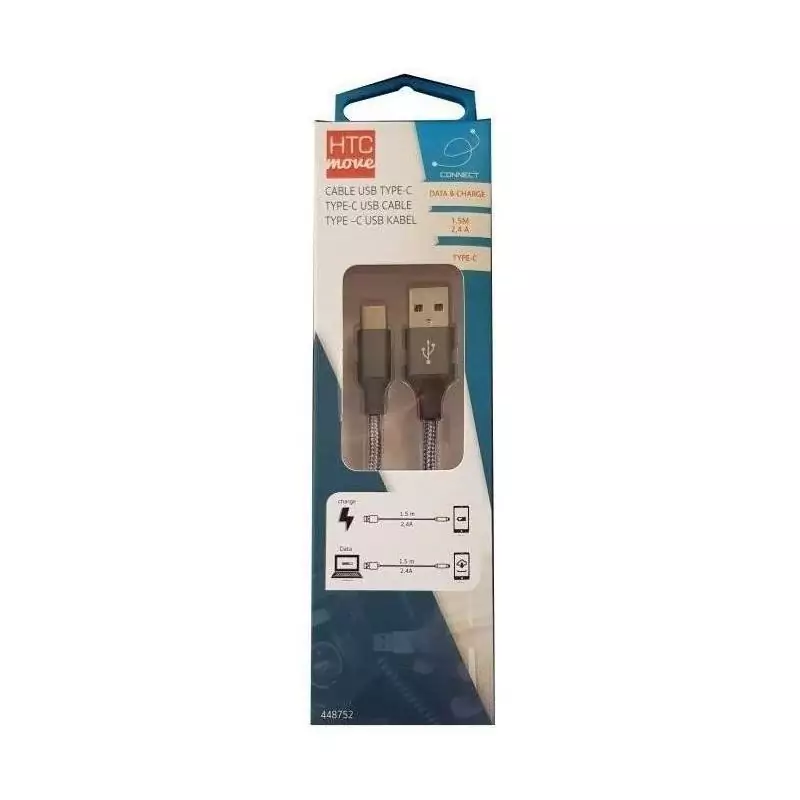 Câble tressé HTC USBA- vers USB-C 2,4A- Charge rapide et transfert de données- Longueur 1,5m