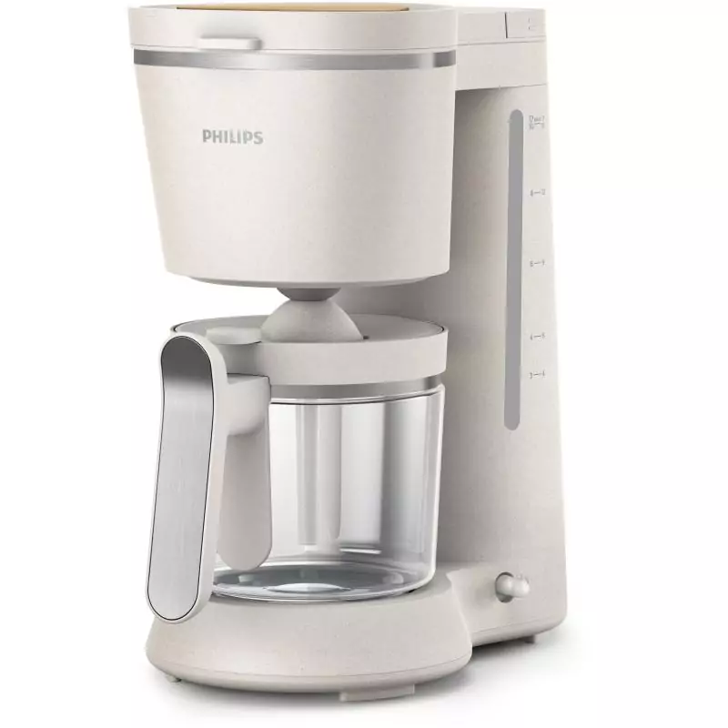 Philips Eco Conscious Edition HD5120/00 Cafetière filtre - Plastiques 100% biosourcés. Type de produit: Machine à café filtre, Type de cafetière: Entièrement automatique, Capacité du réservoir d'eau: 1,2 L, Type d'entrée à café: Café moulu, Réservoir de café: Carafe, Capacité en tasses: 15 tasses. Puissance: 1000 W. Couleur du produit: Blanc