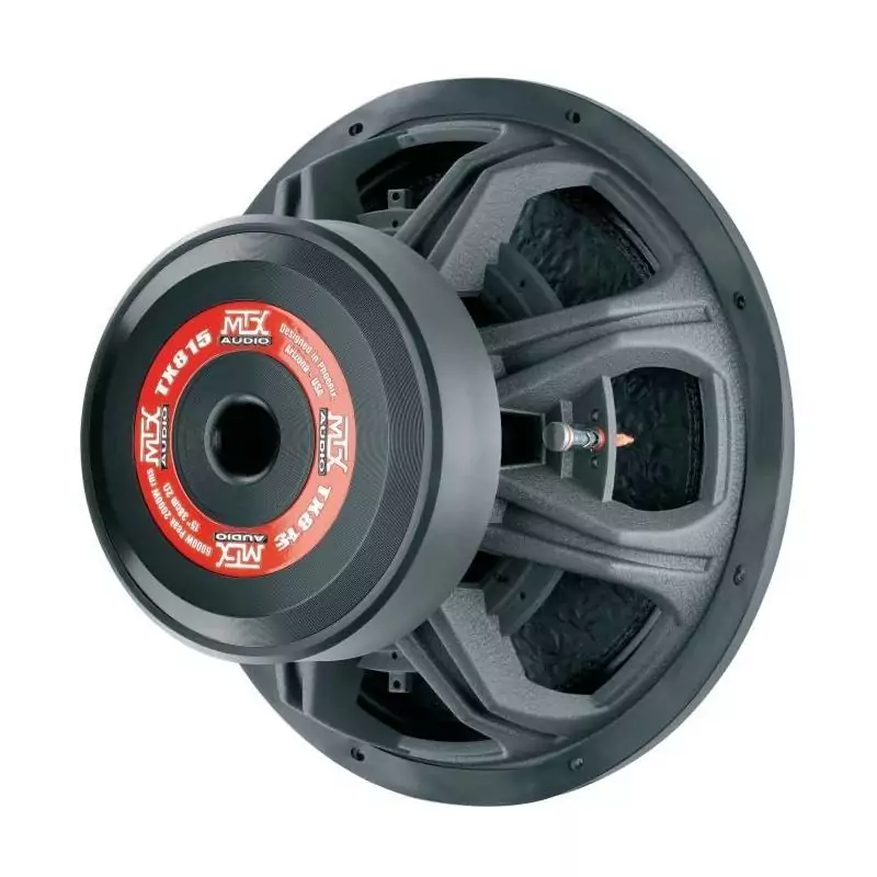 MTX TX815 Subwoofer voiture HighEnd 38cm 2000W RMS 2 châssis alu bobine 3 pour caisson clos ou reflex membrane fibre