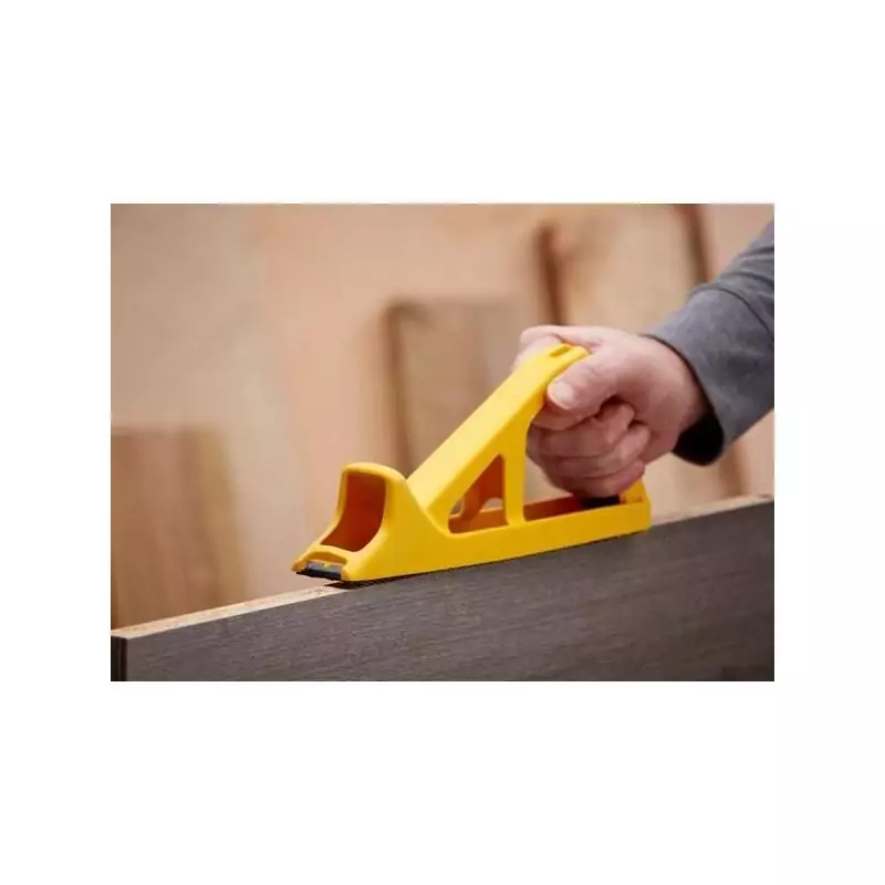Ce rabot est doté d'un corps en plastique robuste qui le rend léger et facile à manipuler, tout en étant durable et résistant aux chocs. Sa lame en acier affûtée garantit des résultats précis et uniformes sur une variété de surfaces, que ce soit du bois, du plastique ou du métal.
