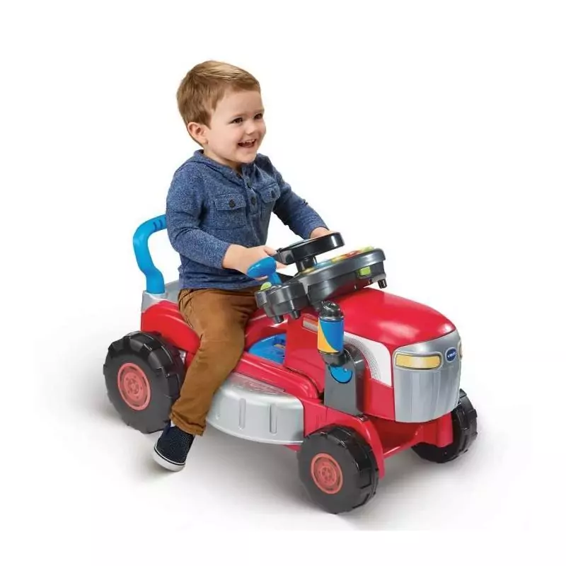 Ce jouet est également interactif, grâce à son capteur de mouvement qui déclenche des sons et des mélodies lorsque l'enfant le fait avancer. De plus, les roues du tracteur tournent pour encore plus de réalisme et de fun !