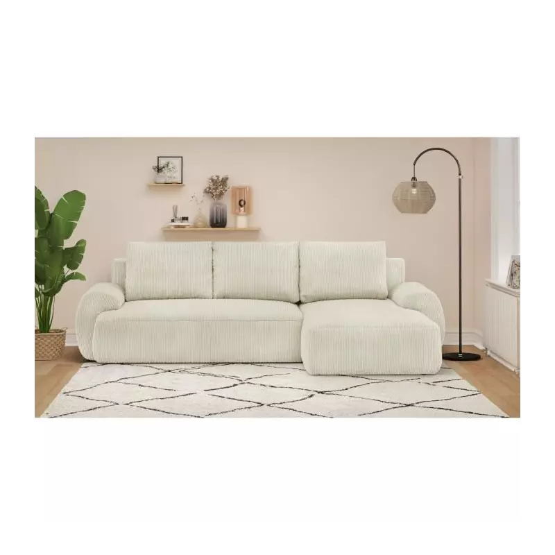 Découvrez notre superbe canapé d'angle droit convertible 4/5 places MILO en velours côtelé beige! Ce magnifique meuble est non seulement élégant et confortable, mais il est également très pratique avec son coffre de rangement intégré. Avec ses dimensions de L 264 x H 84 x P 99/145 cm, ce canapé offre amplement d'espace pour se détendre en famille ou entre amis. De plus, ce produit respectueux de l'environnement est certifié Oeko-Tex Standard 100, garantissant des textiles de haute qualité. Ajoutez une touche de sophistication à votre salon avec le canapé MILO!