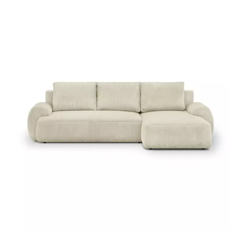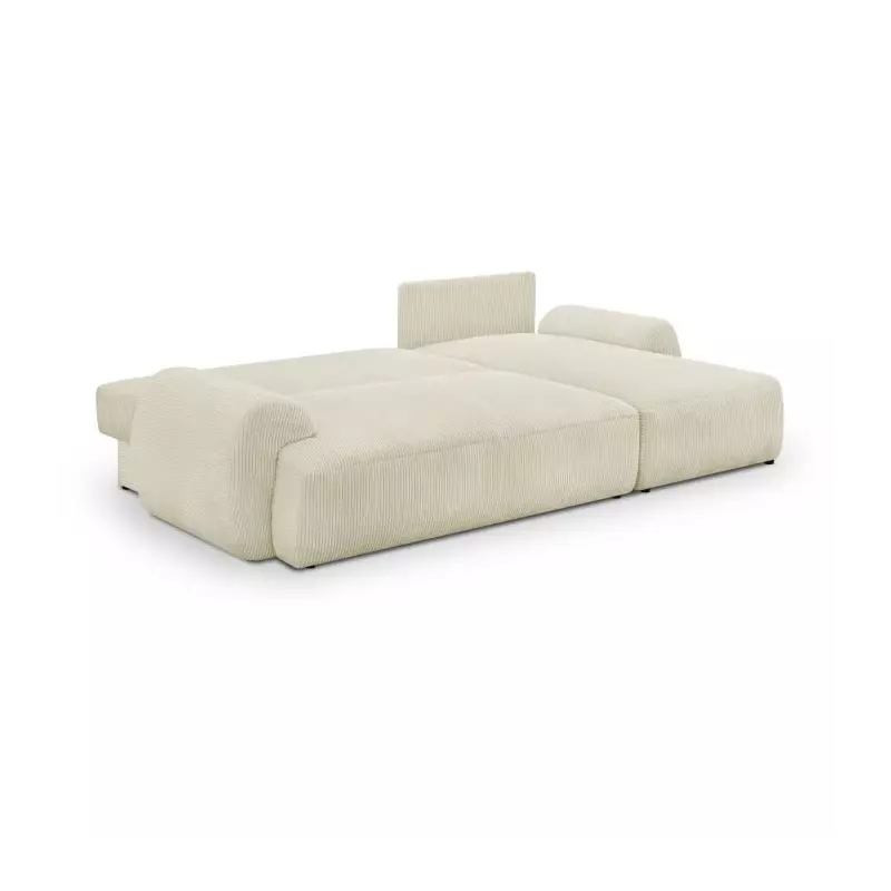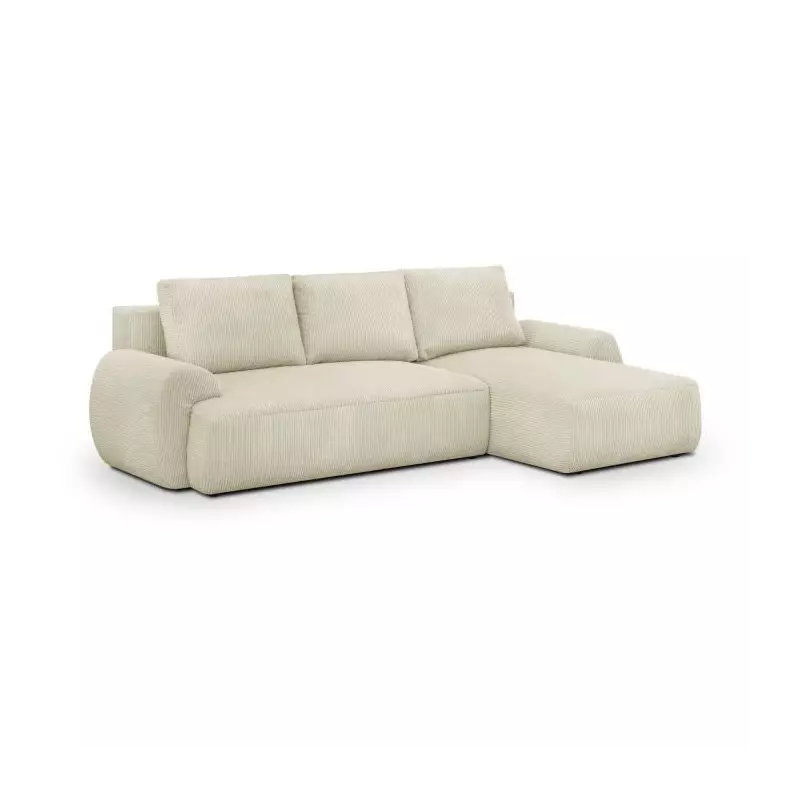 Canapé d'angle droit convertible 4/5 places MILO - Velours côtelés beige - Coffre de rangement - L 264 x H 84 x P 99/145 cm