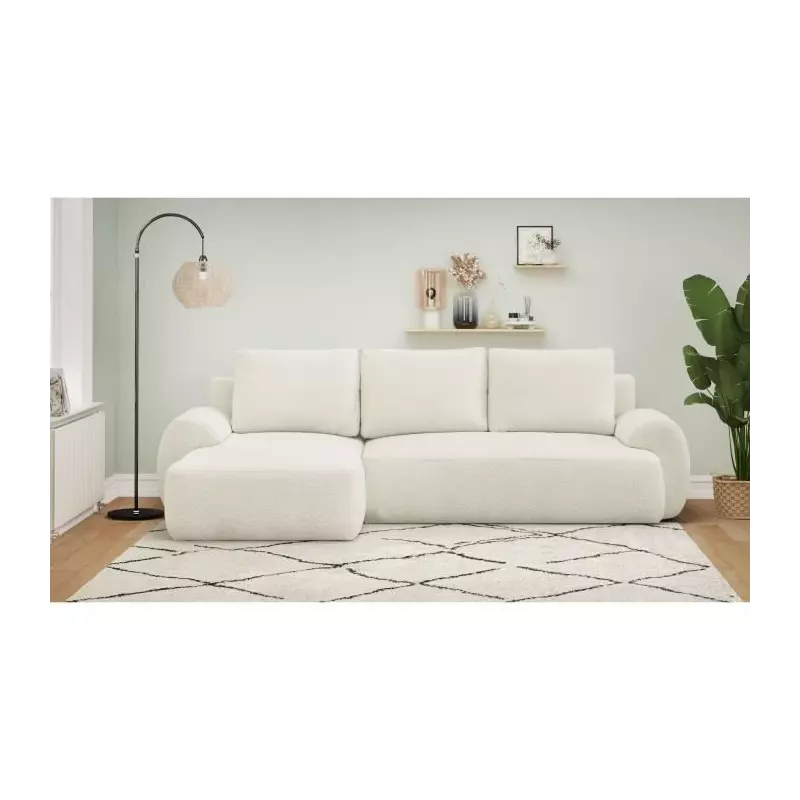 Le canapé d'angle gauche convertible 4/5 places MILO est la solution parfaite pour optimiser l'espace dans votre salon tout en ajoutant une touche de style et d'élégance. Revêtu d'un tissu bouclette beige clair, ce canapé allie confort et esthétique pour créer un espace de détente chaleureux et accueillant.