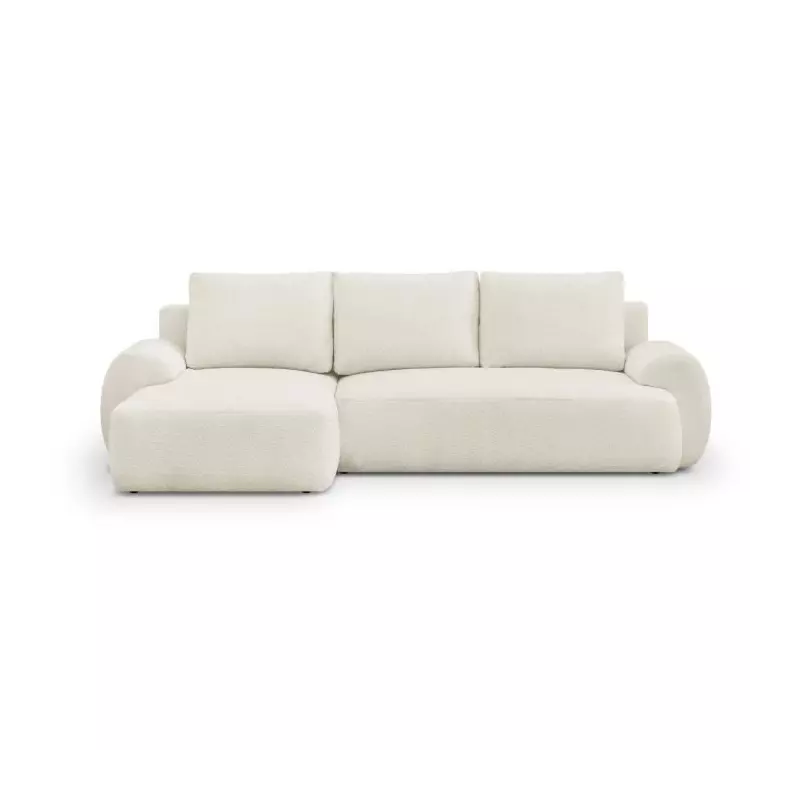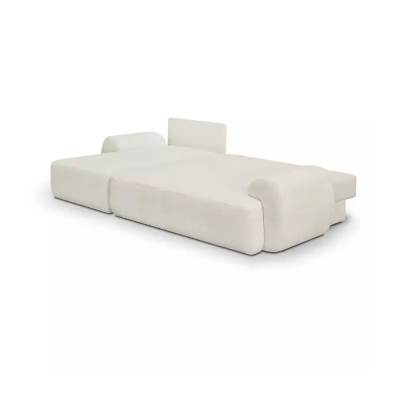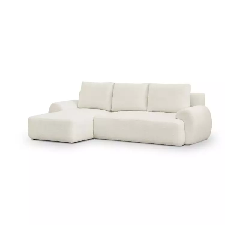 Canapé d'angle gauche convertible 4/5 places MILO - Tissu bouclette beige clair - Coffre de rangement - L 264 x H 84 x P 99/145