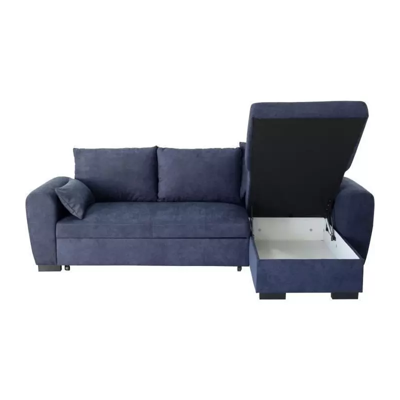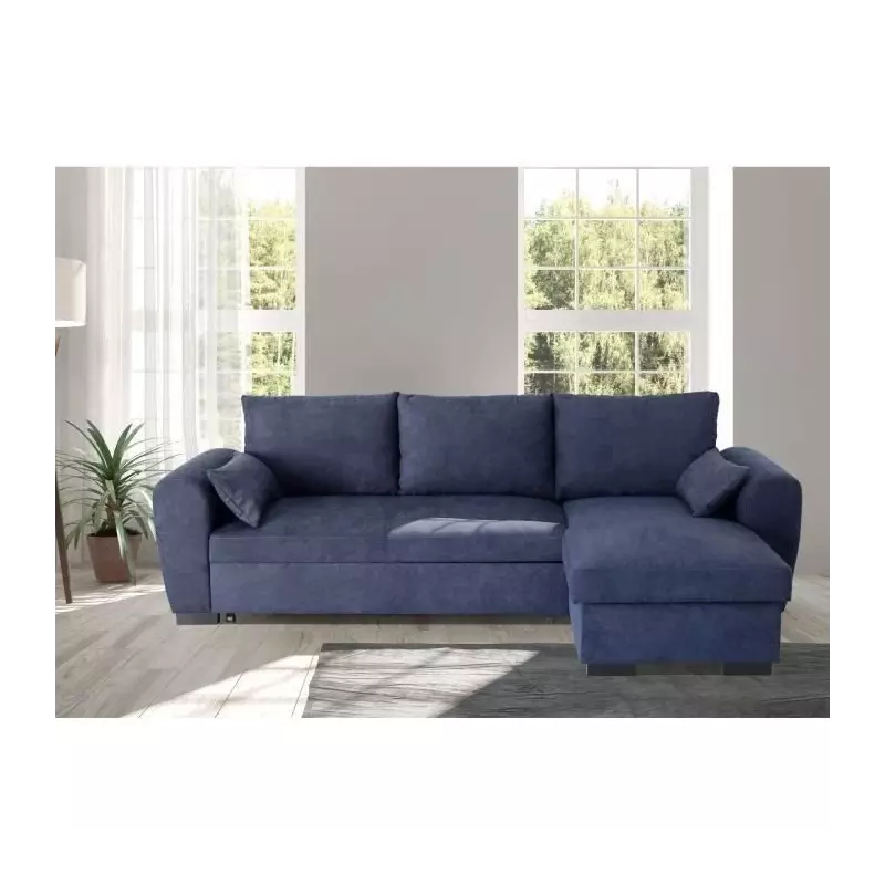 Le canapé d'angle convertible réversible MAX est l'élément parfait pour votre salon. Avec sa méridienne pratique et son coffre de rangement intégré, il allie à la fois confort et fonctionnalité. Son tissu bleu apporte une touche de modernité et d'élégance à votre intérieur.