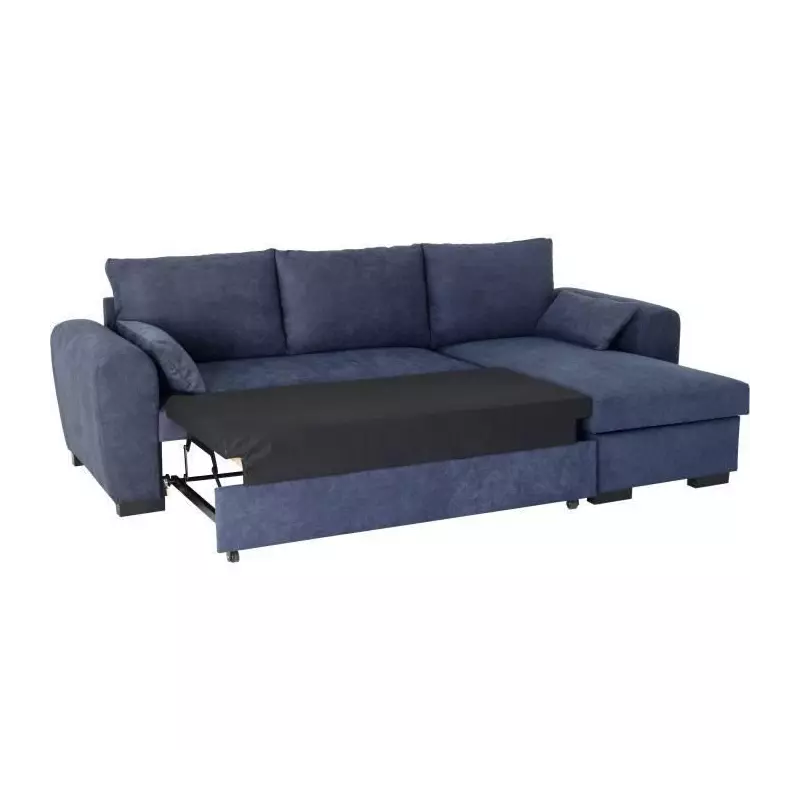 Découvrez notre Canapé d'angle convertible réversible MAX - Méridienne avec coffre - Tissu bleu - L 240 x P 143 x H 85 cm