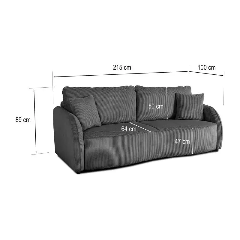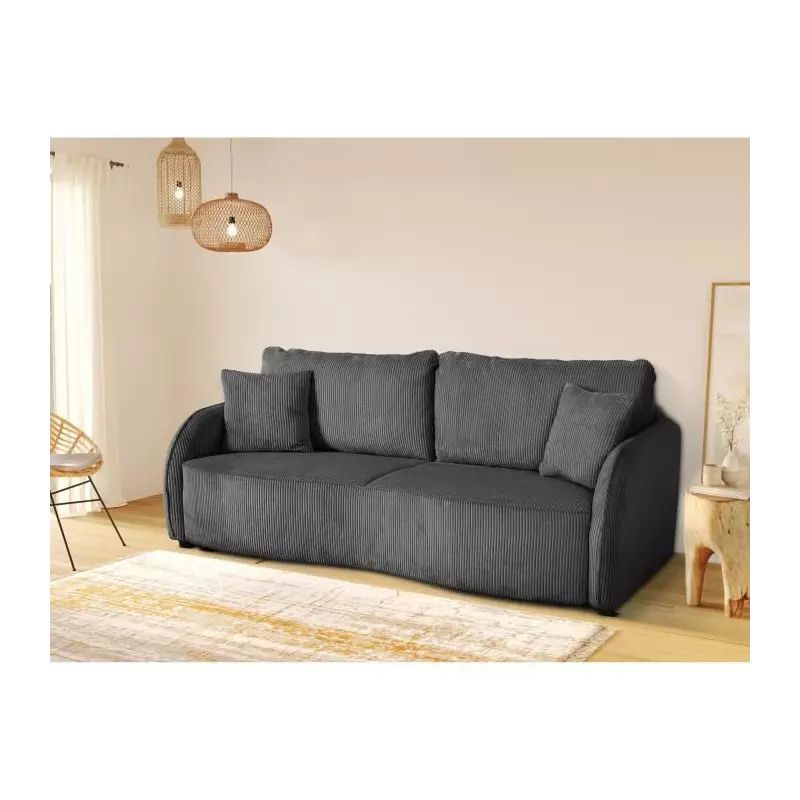 Le Canapé convertible 3 places BARI est l'ajout parfait à votre espace de vie. Revêtu d'un luxueux velours côtelé anthracite, ce canapé apporte à la fois élégance et confort à votre intérieur. Avec ses dimensions généreuses de 215 x 89 x 100 cm, il offre amplement d'espace pour vous détendre seul ou avec des invités.