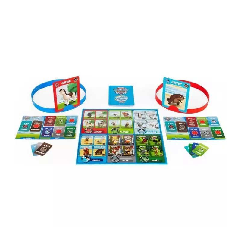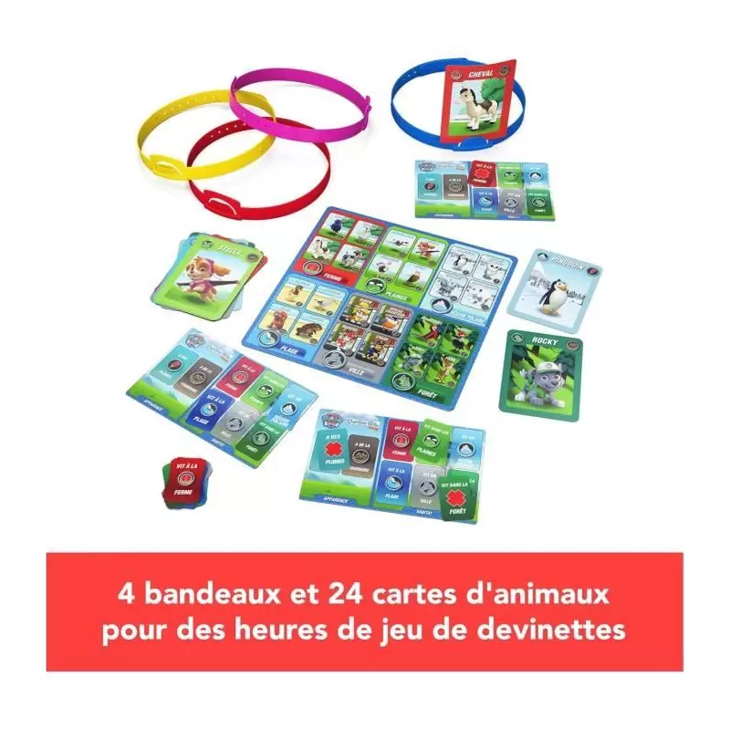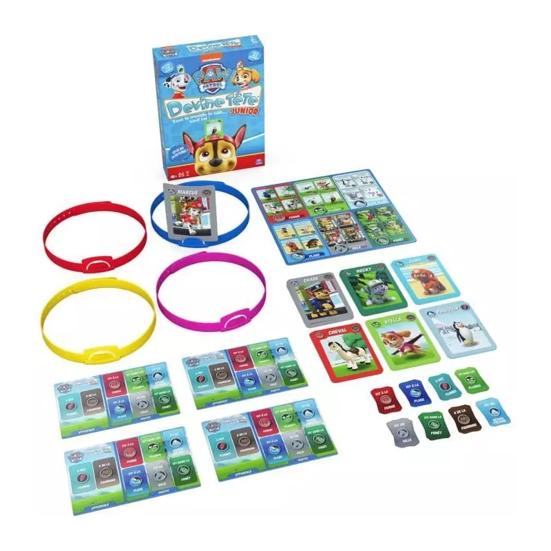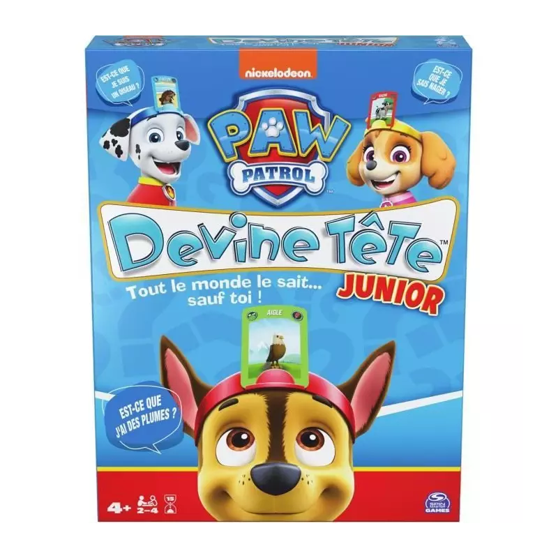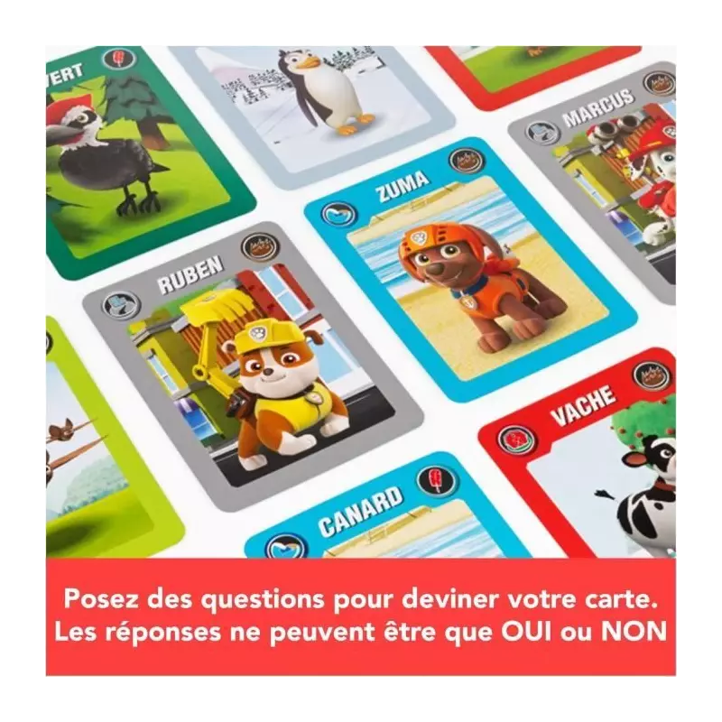 Un jeu simple et très amusant pour réunir petits et grands où il faudra être rapide et perspicace pour gagner ! Tirez une carte (sans la regarder) pour la fixer sur votre bandeau. Posez le maximum de questions en un temps limité pour deviner l’illustration Pat' Patrouille de la carte qui est sur votre tête. Il faut se dépêcher car tout le monde le sait sauf vous !
