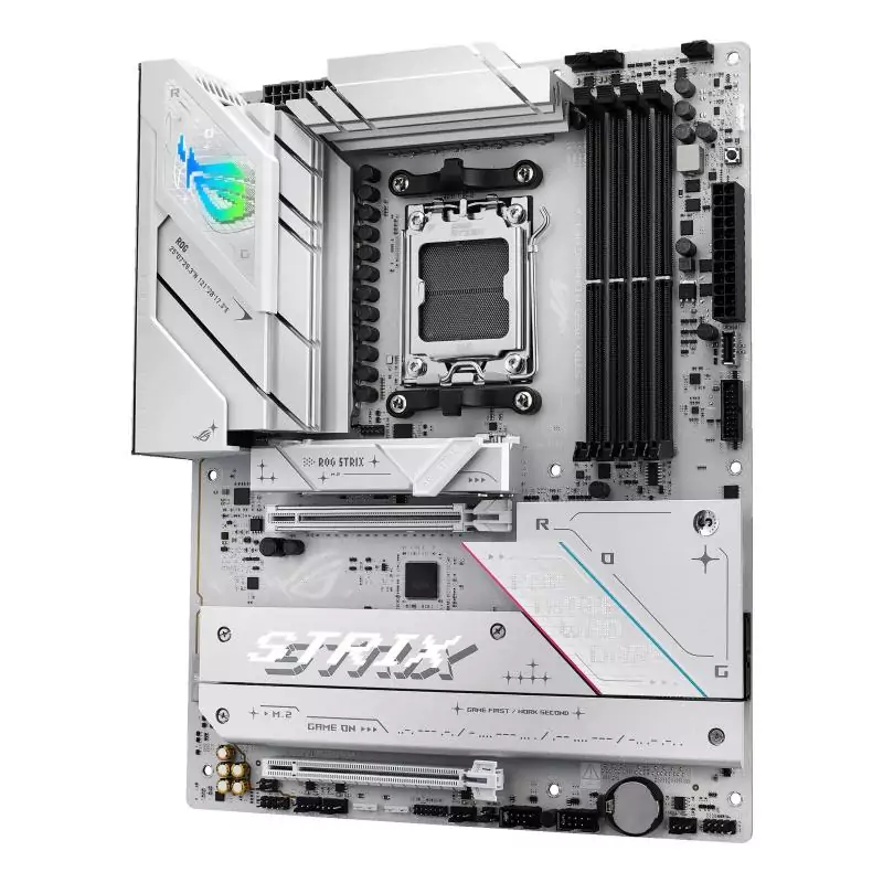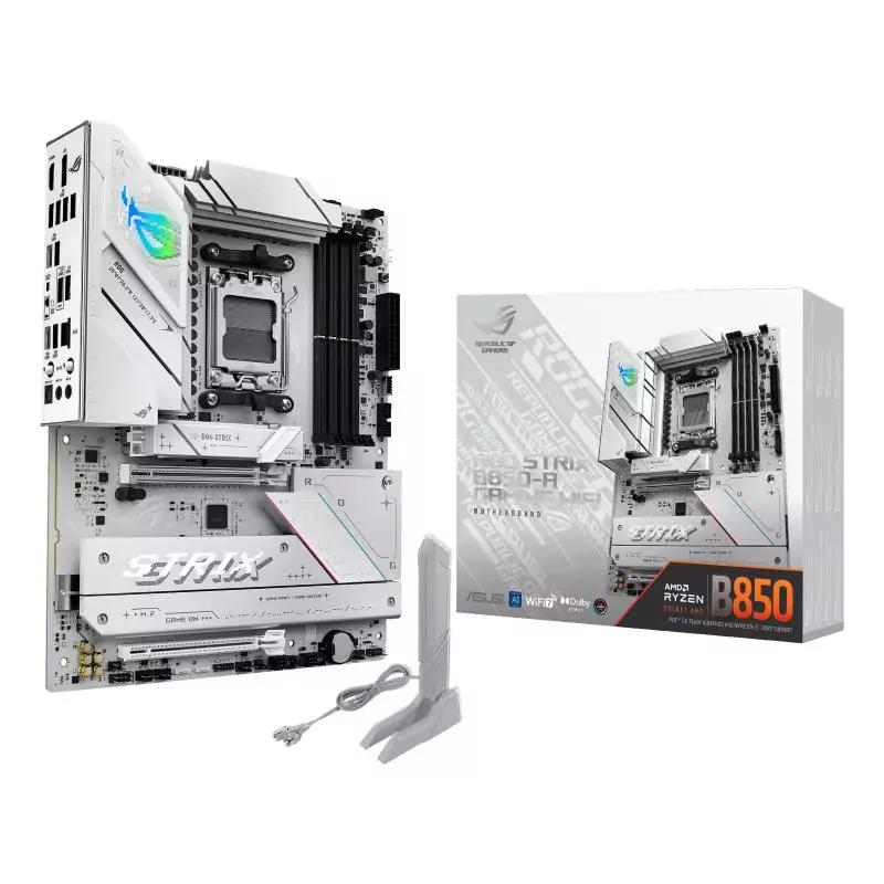 ASUS ROG STRIX B850-A GAMING WIFI. Fabricant de processeur: AMD, Socket de processeur (réceptable de processeur): Emplacement AM5, Processeurs compatibles: AMD Ryzen 7000 Series, AMD Ryzen 8000 Series, AMD Ryzen 9000 Series. Types de mémoire pris en charge: DDR5-SDRAM, Mémoire interne maximale: 192 Go, Type de support (slot): DIMM. Interfaces de lecteur de stockage prises en charge: M.2, SATA III, Types de lecteurs de stockage pris en charge: HDD & SSD, Niveaux RAID: 0, 1, 5, 10. Résolution maximale: 7680 x 4320 pixels. Type d'interface Ethernet: 2.5 Gigabit Ethernet, Norme Wi-Fi: Wi-Fi 7 (802.11be), Standards wifi: Wi-Fi 7 (802.11be)
