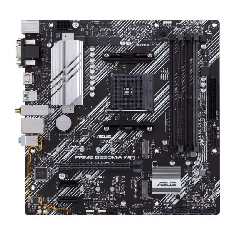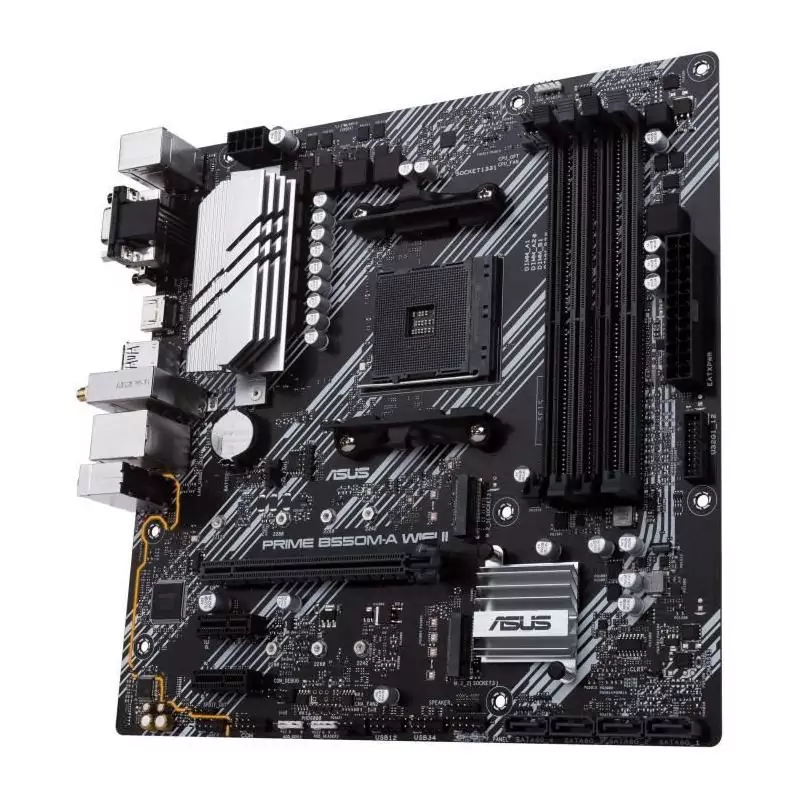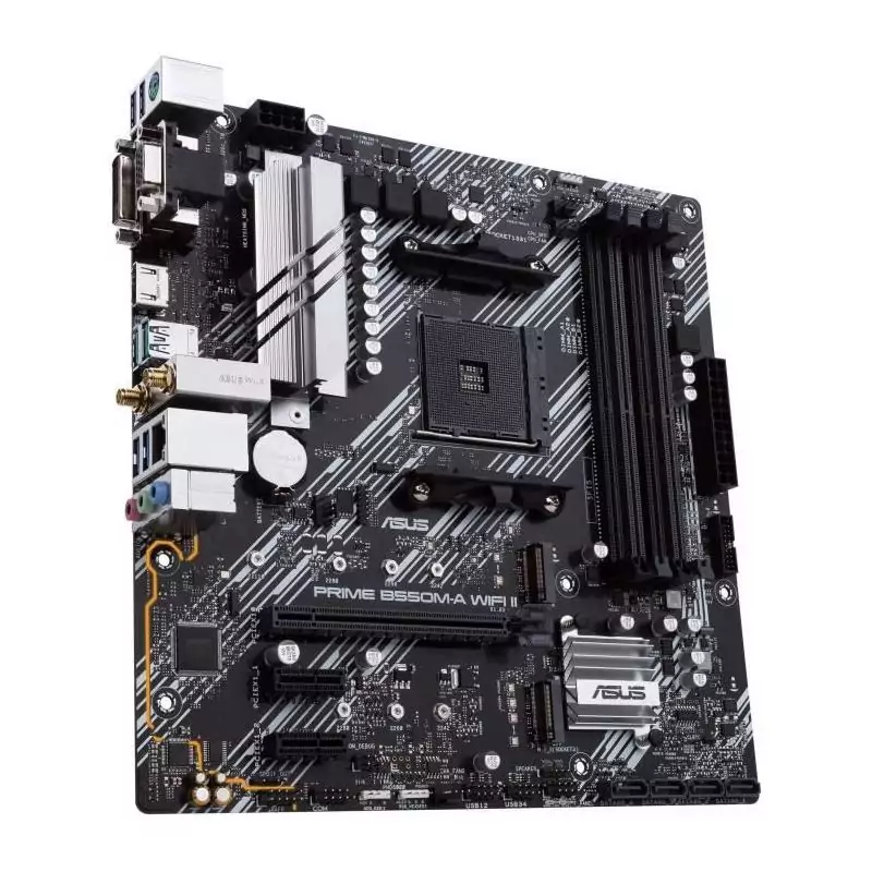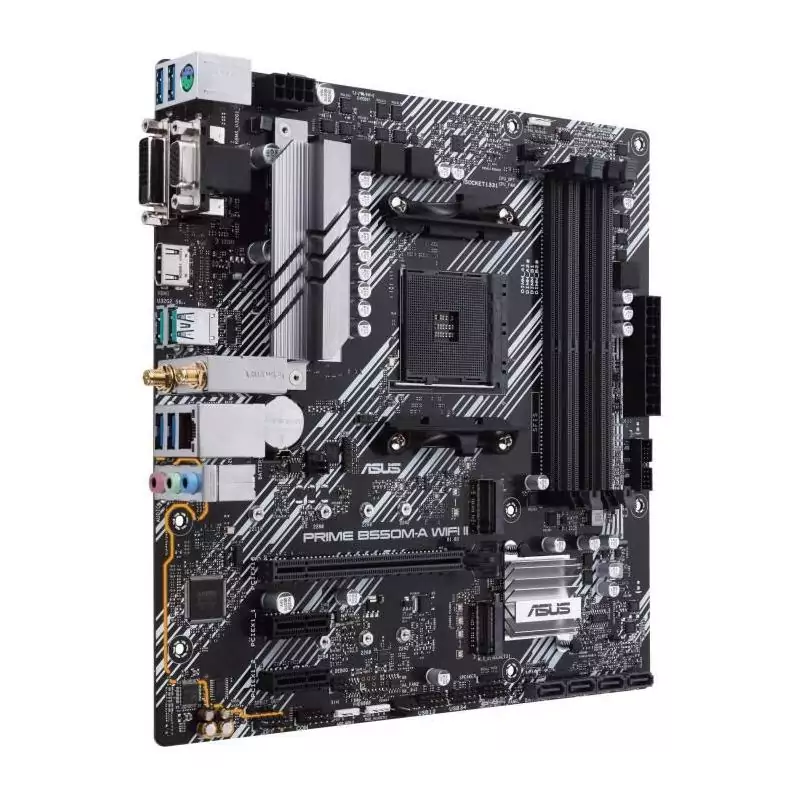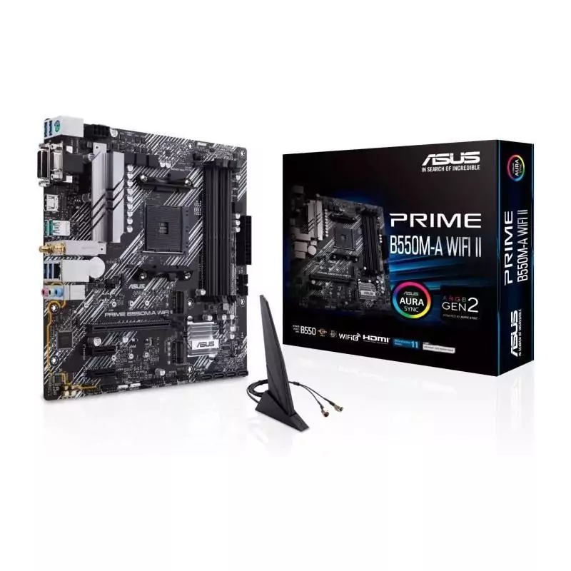 La carte mère ASUS PRIME B550M-A WIFI II est conçue pour offrir des performances exceptionnelles et une fiabilité optimale pour votre configuration informatique. Dotée de la technologie AMD B550 et d'un emplacement AM4 micro ATX, elle garantit une compatibilité maximale avec les processeurs AMD Ryzen de dernière génération.