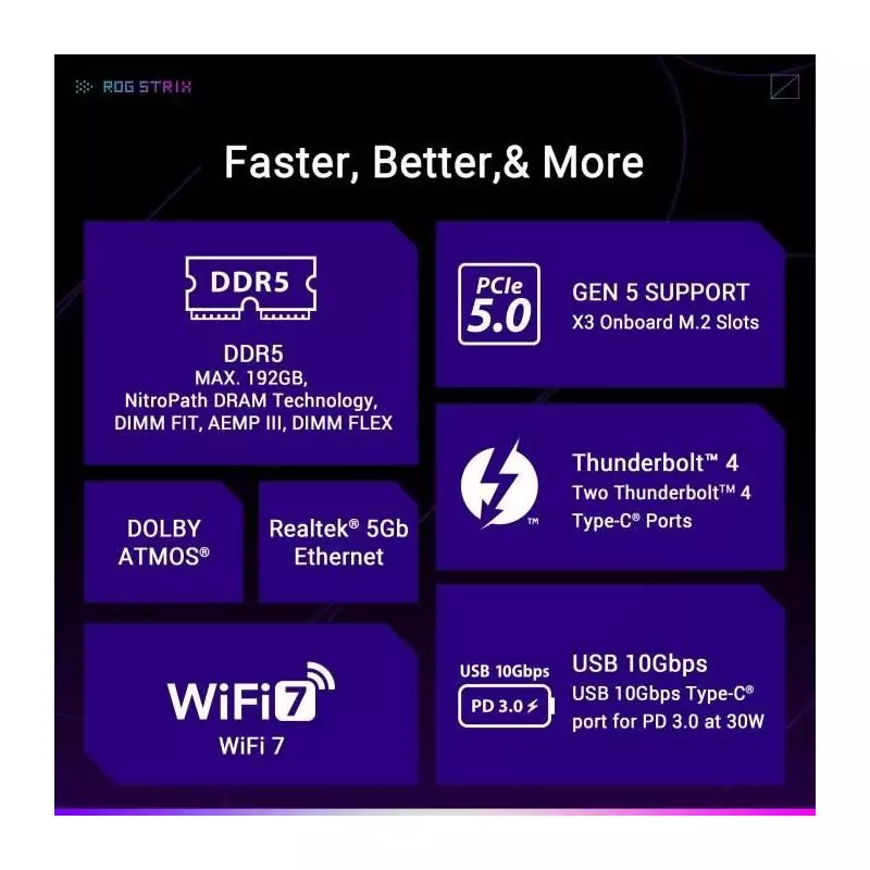 La carte mère ASUS STRIX Z890-E GAMING WIFI est un choix de premier ordre pour les passionnés de jeux et de puissance informatique. Dotée d'une connectivité Wi-Fi intégrée, cette carte mère ATX offre des performances de pointe et une fiabilité à toute épreuve.