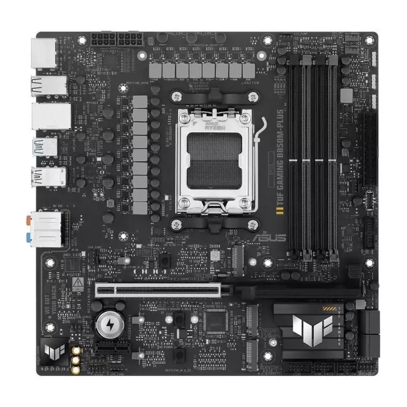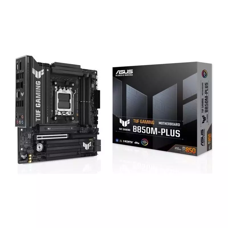 La carte mère ASUS TUF GAMING B850M-PLUS est un choix de qualité pour les passionnés de jeux qui cherchent à construire une plateforme solide et performante. Dotée du chipset AMD B850 et d'un emplacement AM5, cette carte mère micro ATX offre une excellente compatibilité avec les derniers processeurs AMD, garantissant des performances optimales pour vos sessions de jeu les plus intenses.