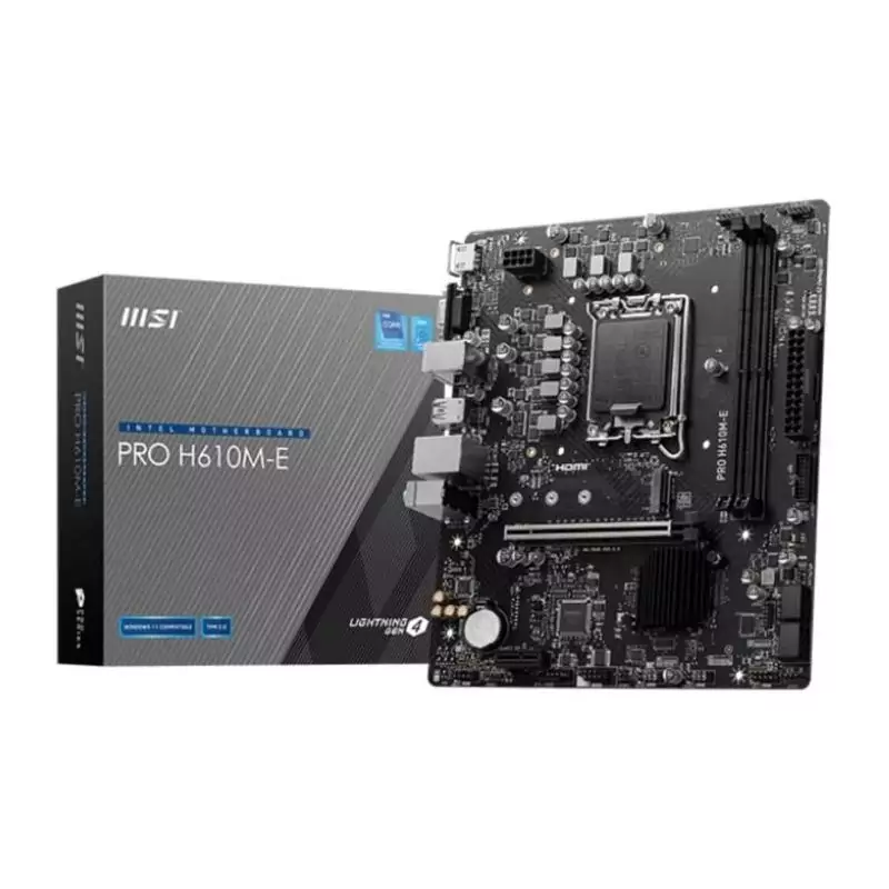 Passez au niveau supérieur avec la carte mère MSI PRO H610M-E et découvrez tout ce dont vous avez besoin pour optimiser votre expérience informatique. Faites-en l'élément central de votre configuration et prenez votre système au prochain niveau de performance et de fiabilité.