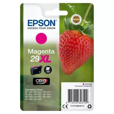 Epson Strawberry Cartouche "Fraise" 29XL - Encre Claria Home M. Type d’encre de couleur: Encre à pigments, Type de cartouche d'encre: Rendement élevé (XL), Rendement par page d'encre de couleur: 450 pages, Volume d'encre de couleur: 6,4 ml, Couleurs d'impression: Magenta, Quantité: 1 pièce(s)