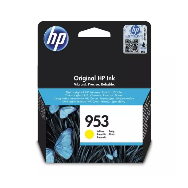 HP 953 Cartouche d’encre jaune authentique. Type d’encre de couleur: Encre à pigments, Type de cartouche d'encre: Rendement standard, Type d'alimentation: Paquet unique, Rendement par page d'encre de couleur: 630 pages, Volume d'encre de couleur: 9 ml, Couleurs d'impression: Jaune, Quantité: 1 pièce(s)