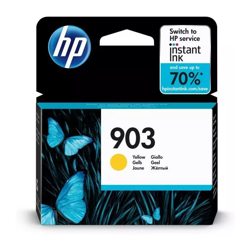 HP 903 Cartouche d’encre jaune authentique. Type d’encre de couleur: Encre à pigments, Type de cartouche d'encre: Rendement standard, Type d'alimentation: Paquet unique, Rendement par page d'encre de couleur: 315 pages, Couleurs d'impression: Jaune, Quantité: 1 pièce(s)