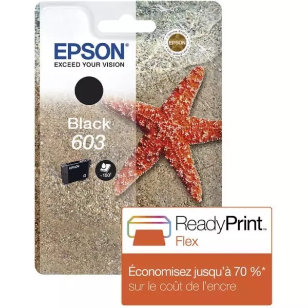 Grâce à la technologie avancée d'EPSON, la cartouche 603 noir - Etoile de mer assure des performances fiables et une longue durée de vie. Vous pourrez imprimer en toute tranquillité, sans craindre les bavures ou les taches sur vos documents importants.