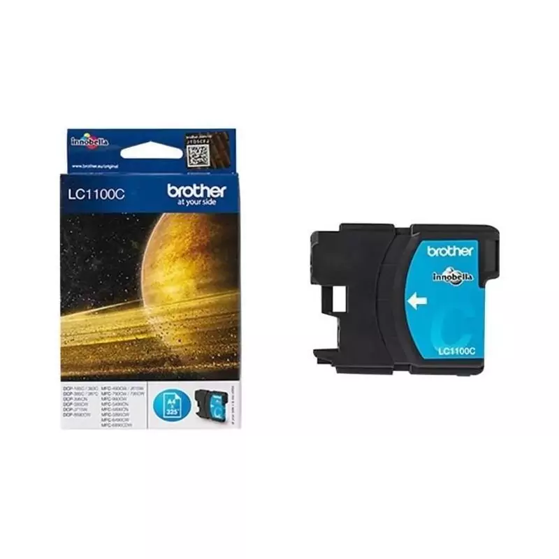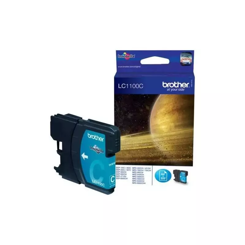 Brother LC1100C - Cartouche d'encre originale – Cyan. Type d'alimentation: Paquet unique, Rendement par page d'encre de couleur: 325 pages, Couleurs d'impression: Cyan, Quantité: 1 pièce(s)