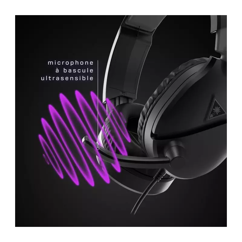 MICROPHONE A BASCULE ULTRASENSIBLE Le célèbre microphone haute sensibilité de Turtle Beach capte parfaitement votre voix pour que vos commandes soient toujours entendues. Lorsque vous ne l'utilisez pas, relevez-le pour passer en mode sourdine : il se fond dans le design du casque.