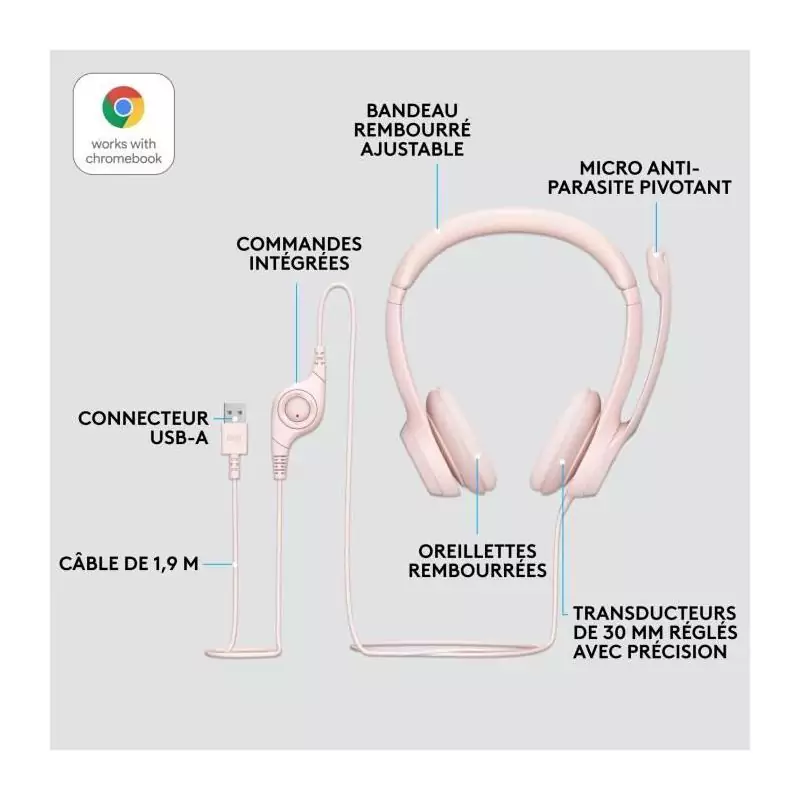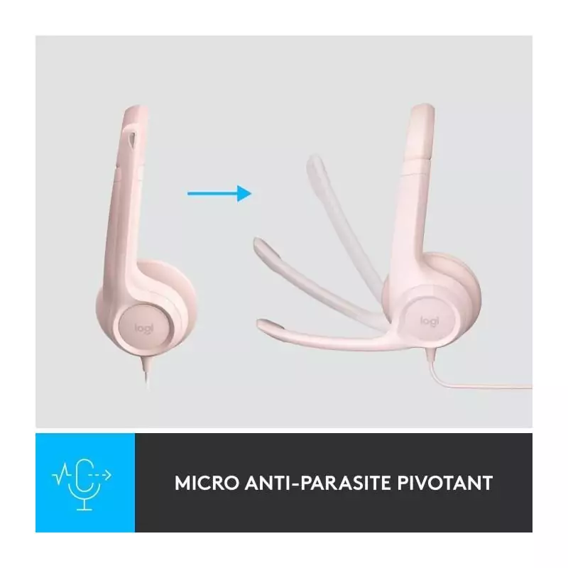 Casque - Filaire - Logitech - H390 - USB - Anti-parasite - Rose