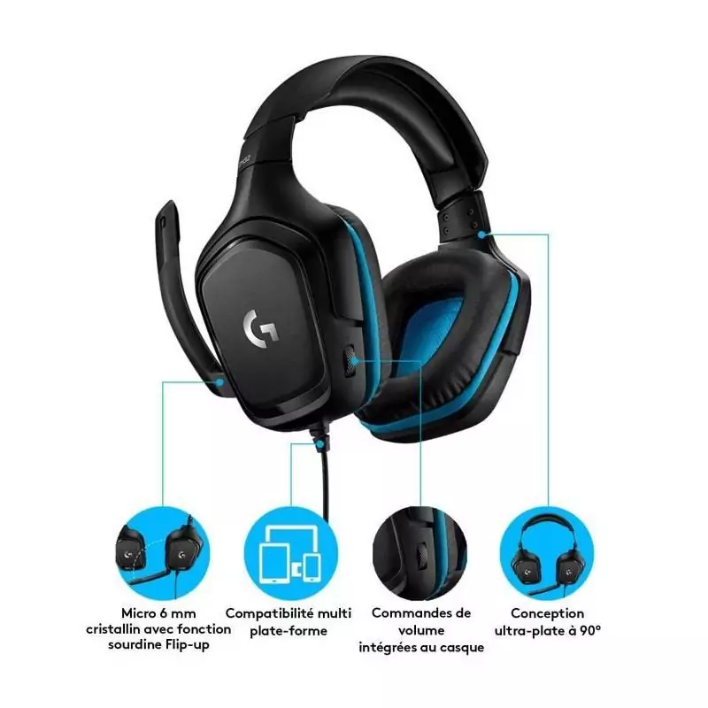 Découvrez le casque gamer filaire Logitech G432 pour une expérience de jeu ultime sur Xbox One, PS4, Switch, PC et MAC. Avec son design noir élégant, ce casque offre un son surround immersif et un micro de qualité pour une communication claire avec vos coéquipiers. Confortable et léger, il vous permet de jouer pendant des heures sans fatigue. Plongez au cœur de l'action avec le casque gamer Logitech G432.