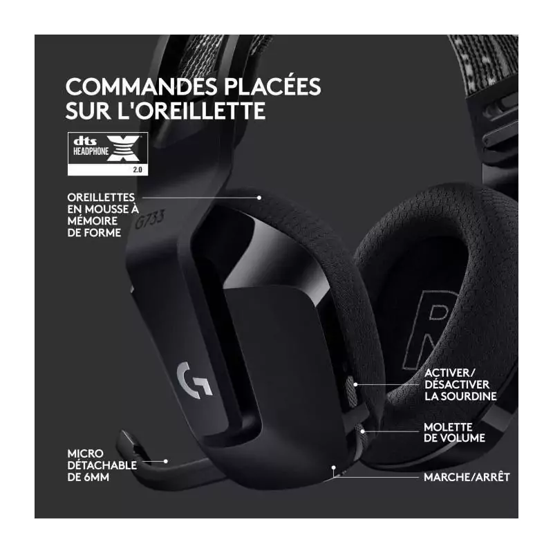 Plongez au cœur de l'action avec le casque gamer sans fil Logitech G733 Lightspeed en noir. Conçu pour les passionnés de jeux sur PS5, PS4, PC et MAC, ce casque est l'accessoire ultime pour une expérience de jeu immersive.