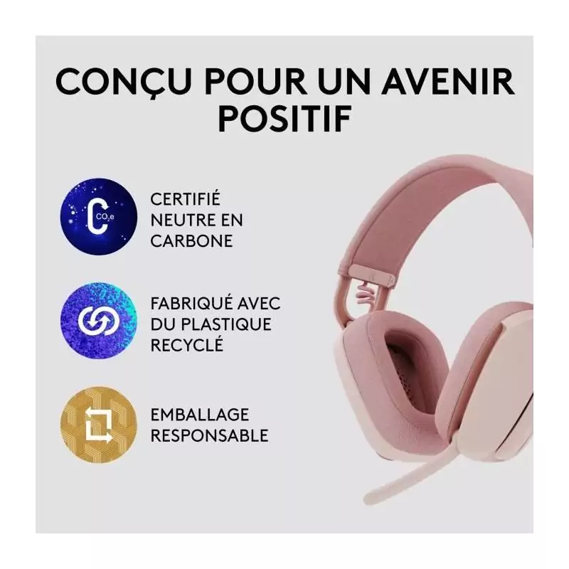 Découvrez le casque sans fil Logitech Zone Vibe 100 en rose. Profitez d'une qualité audio exceptionnelle grâce à la technologie Bluetooth et à la fonction anti-parasite. Idéal pour les appels professionnels ou pour écouter de la musique en toute liberté. Ce casque avec microphone offre un confort optimal pour une utilisation prolongée. Restez connecté(e) et profitez d'une expérience sonore immersive avec le casque Logitech Zone Vibe 100.