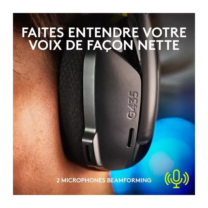 Découvrez le casque gamer sans fil Logitech G435 Lightspeed en noir. Plongez au cœur de l'action avec une immersion sonore exceptionnelle et une liberté de mouvement totale. Ce casque léger et confortable offre une qualité audio supérieure, un micro performant pour une communication claire et des commandes intuitives. Profitez d'une expérience de jeu immersive et sans fil grâce à la technologie Lightspeed de Logitech. Optez pour la performance et le confort avec le casque gamer G435 Lightspeed.