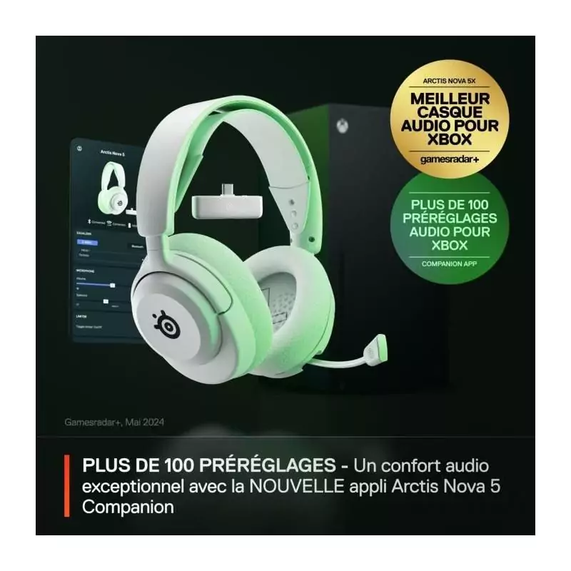 Découvrez le Casque Gaming Sans fil STEELSERIES Arctis Nova 5X en Blanc. Plongez-vous dans une expérience de jeu immersive avec un son de qualité supérieure et un microphone clair pour la communication en ligne. Confortable et léger, ce casque sans fil vous permet de jouer pendant des heures sans fatigue. Profitez d'une liberté de mouvement totale grâce à sa connexion sans fil fiable. Avec le Casque Gaming Sans fil STEELSERIES Arctis Nova 5X, vivez vos jeux préférés à un tout autre niveau.