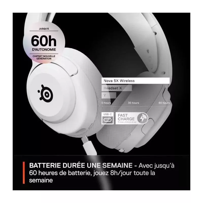 Le casque gaming sans fil STEELSERIES Arctis Nova 5X en blanc est un incontournable pour les passionnés de jeux vidéo en quête d'une expérience immersive ultime. Avec sa conception haut de gamme et ses fonctionnalités avancées, ce casque vous transporte au cœur de l'action pour vivre des moments intenses et palpitants.
