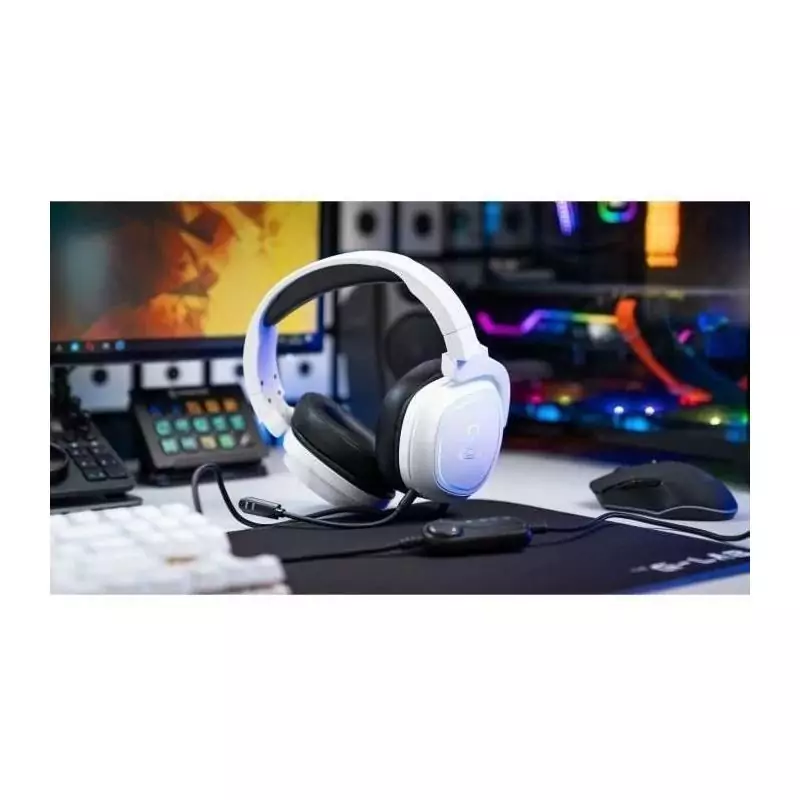 Le casque gamer filaire The G-Lab KORP RADIUM est le compagnon idéal pour les passionnés de jeux vidéo en quête d'une expérience immersive. Avec son design élégant en blanc et ses lumières RGB personnalisables, ce casque est non seulement performant, mais aussi esthétique.